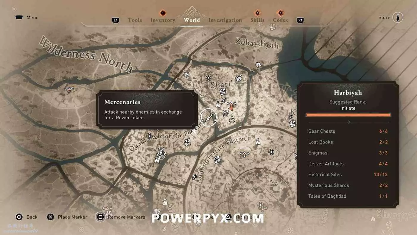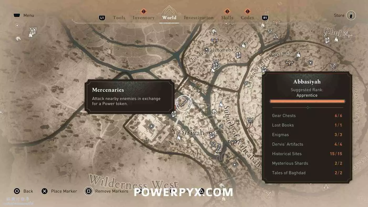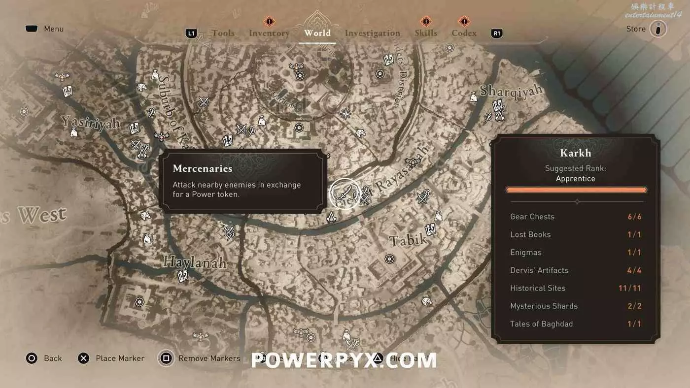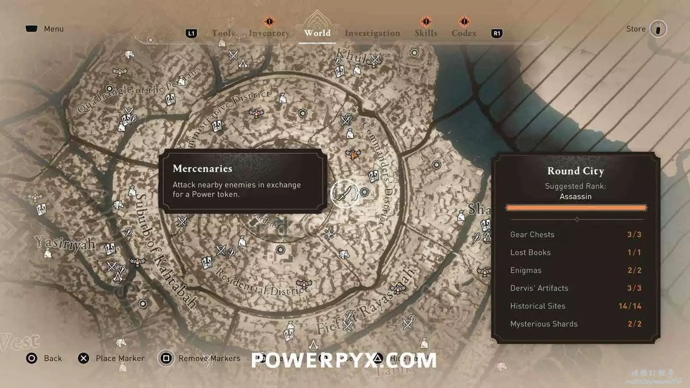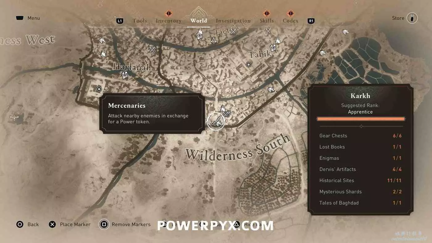 雇傭兵在地圖上以白色單刀圖示標記顯示,同步某區域的俯瞰點(鳥瞰點)後就會跟隨該俯瞰點解鎖。與其中5位互動並每人支付1個代幣(偷竊獲得)即可跳杯。