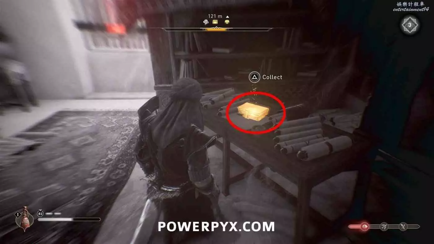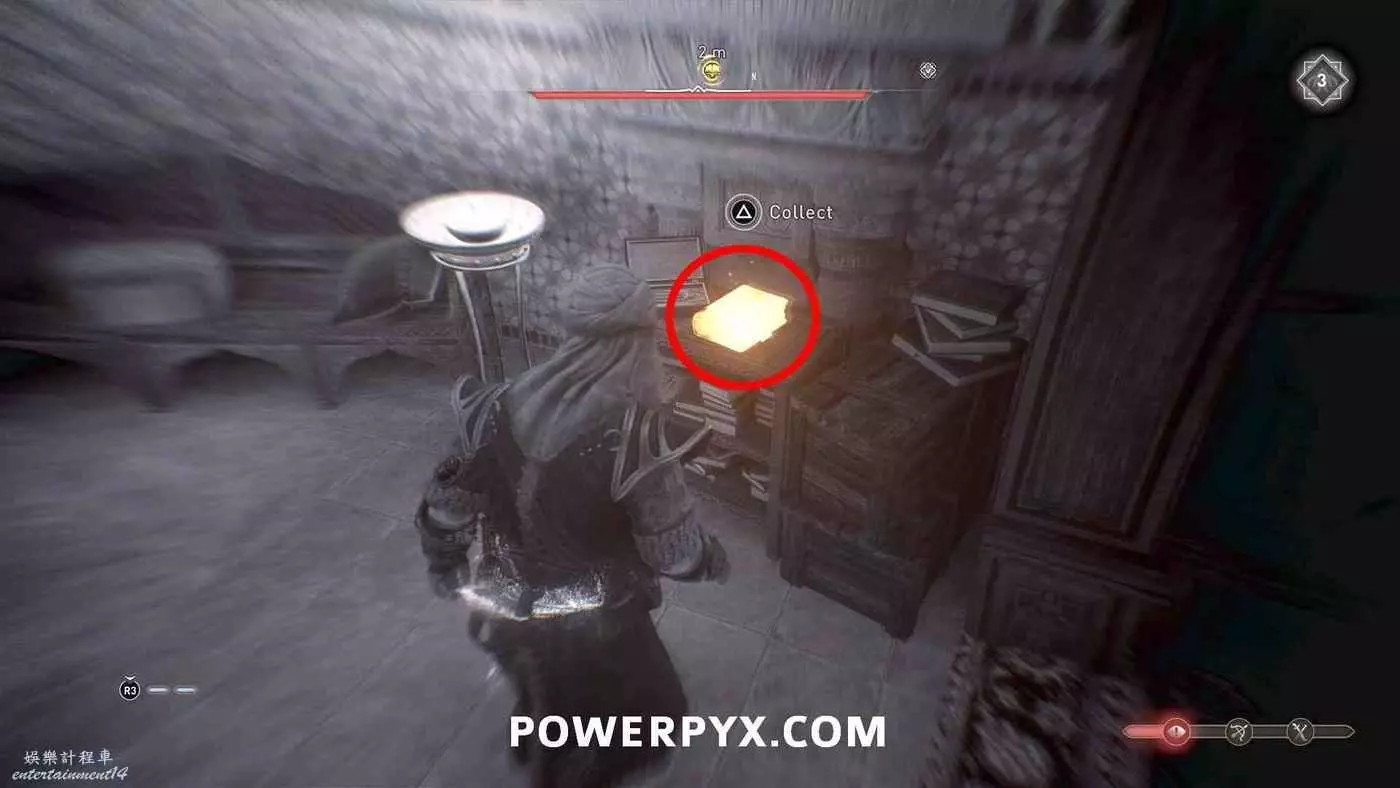 參考下圖進入這本書所在的房間。離開時可以原路返回,爬上宮殿南邊的牆。