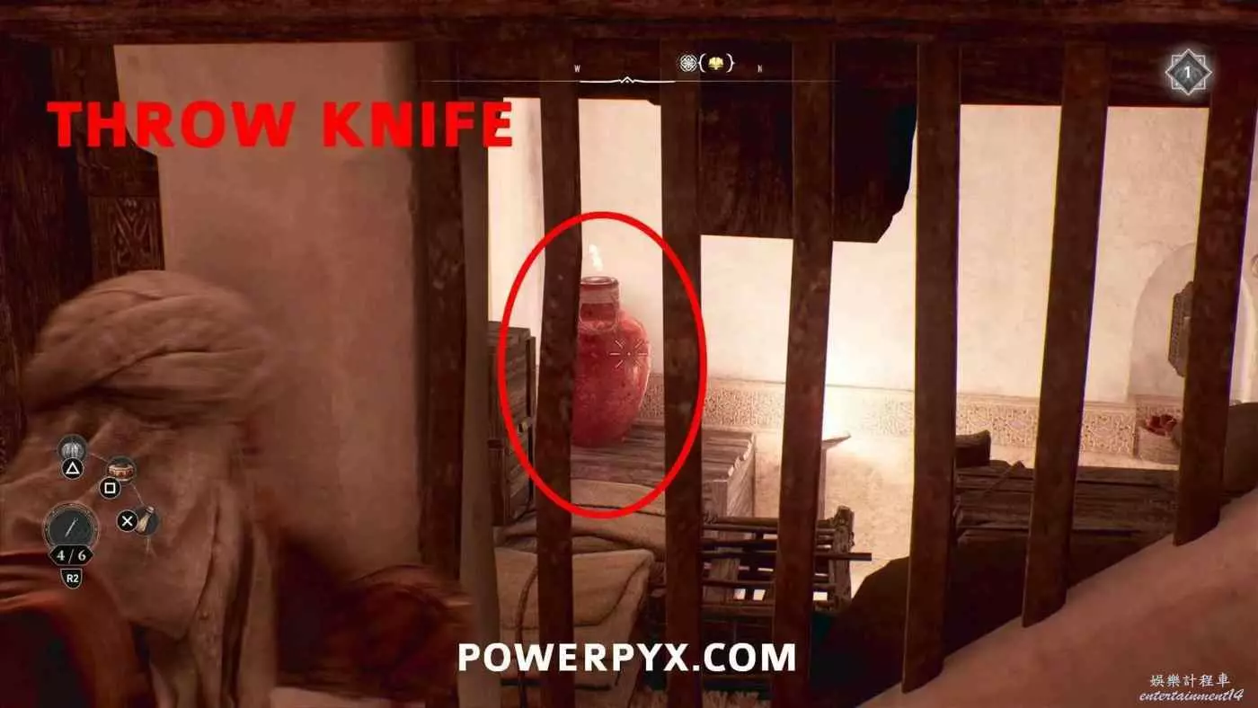 位於港口營地西邊的一幢房子上層。從東邊靠近,可以在上層找到一扇窗戶,扔飛刀過去擊中鐵窗。