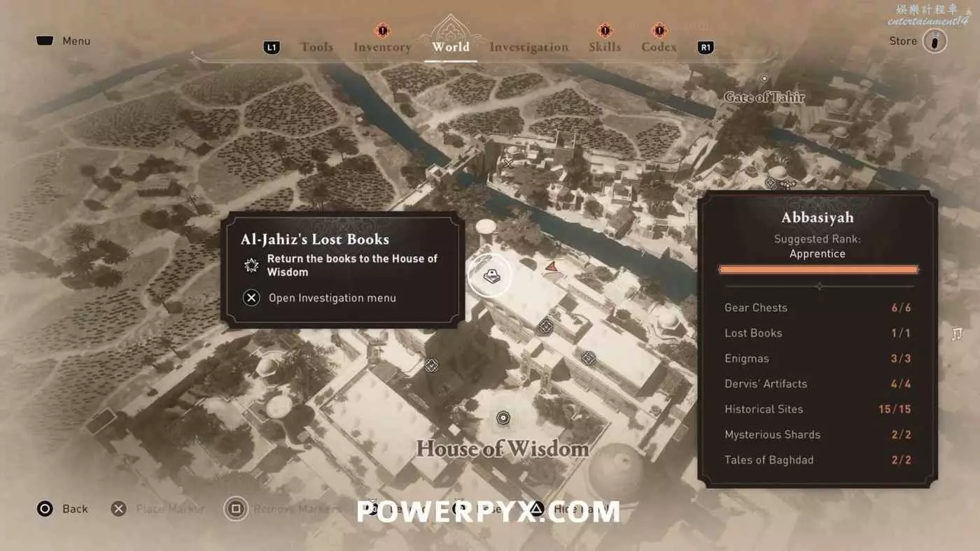 找到所有遺失書籍後,返回阿拔斯區將書交給賈希茲,即可解鎖“學者”獎盃或成就。