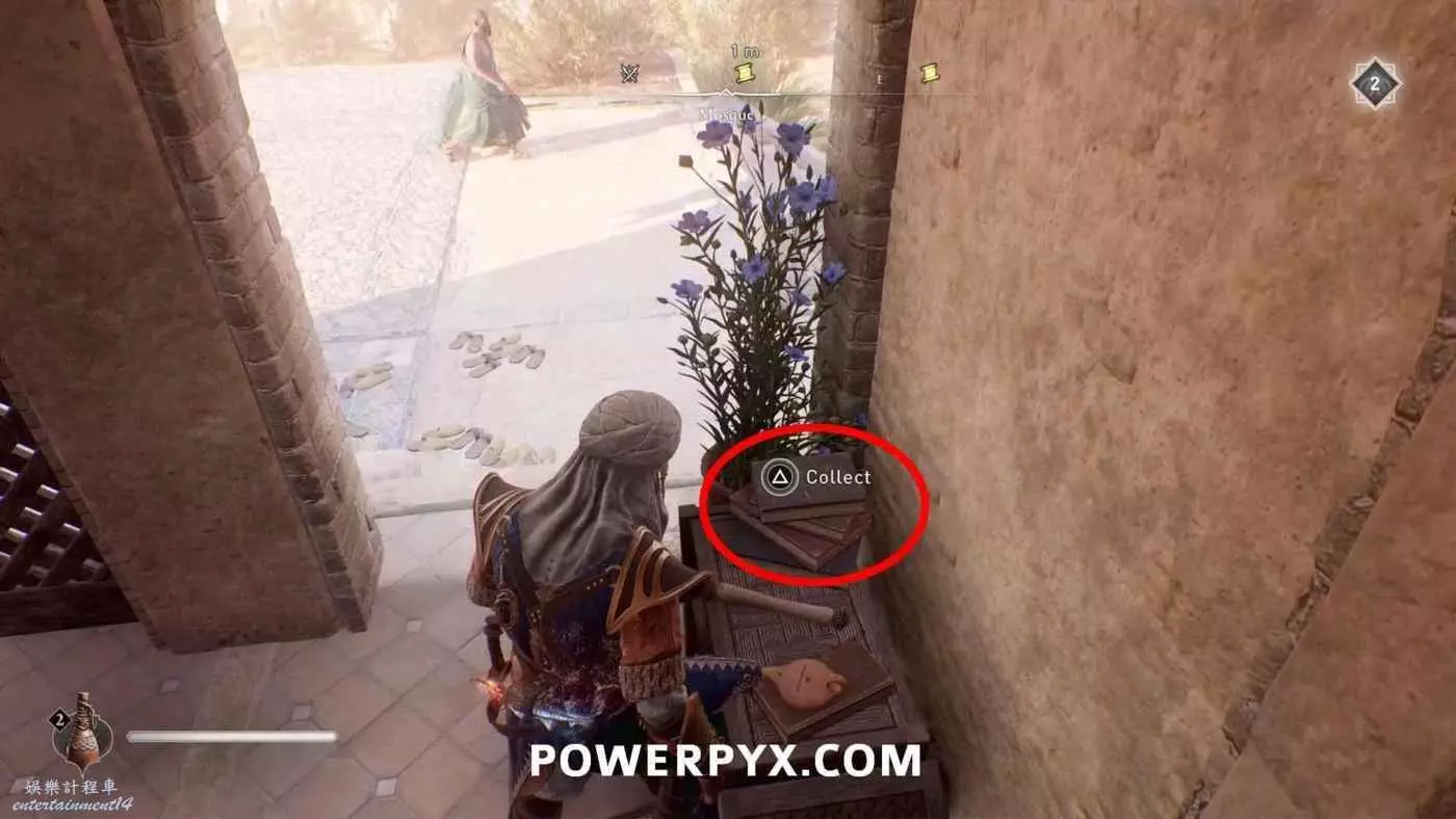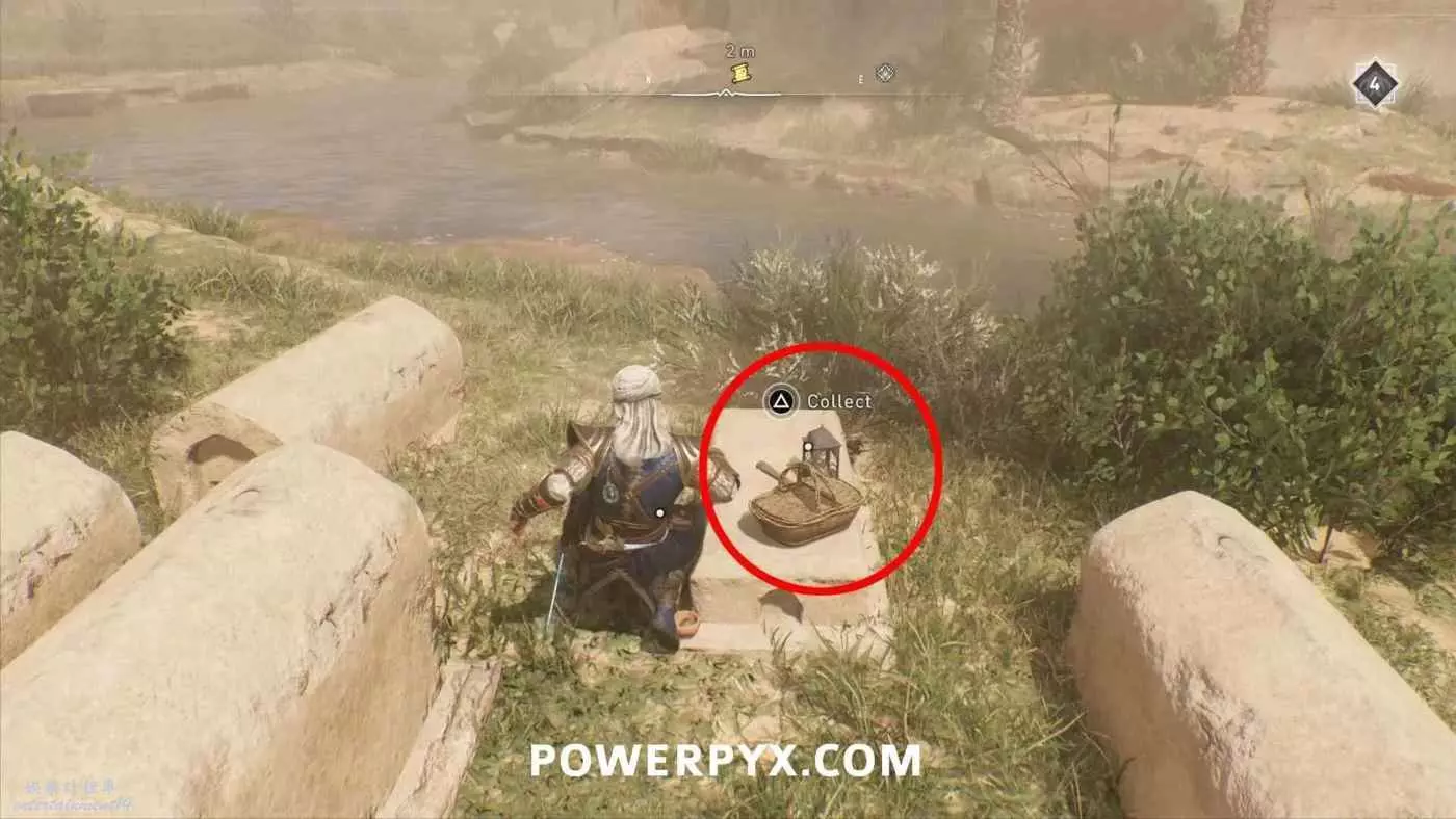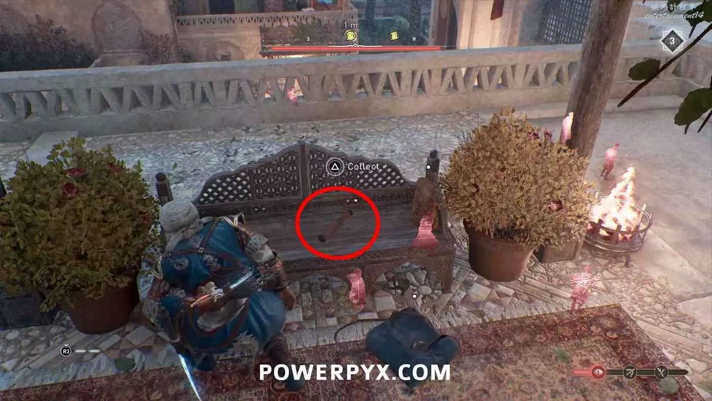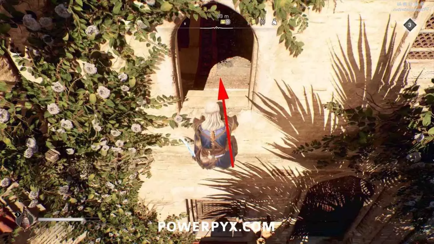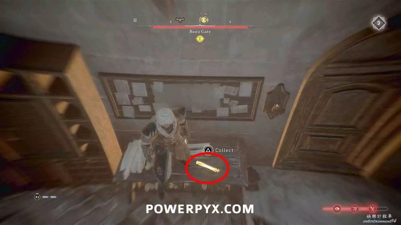 寶藏位置:位於旁邊有水車的建築內。門上鎖了,需要通過一扇打開的窗戶扔飛到進去擊中鐵窗,然後從窗戶爬進去,即可在一層沙堆旁邊找到寶藏。