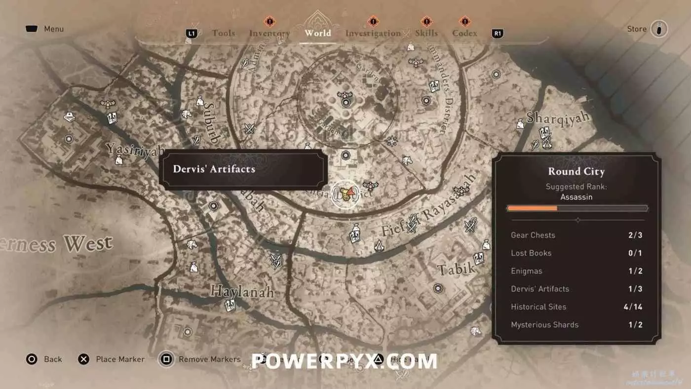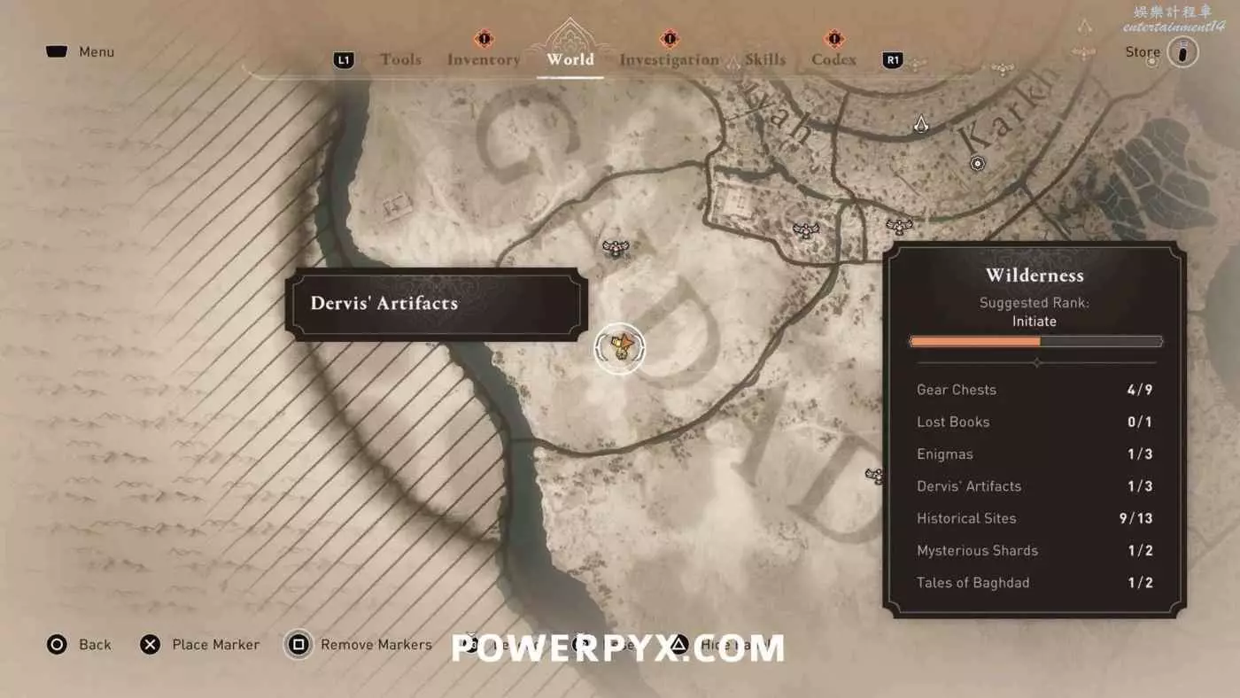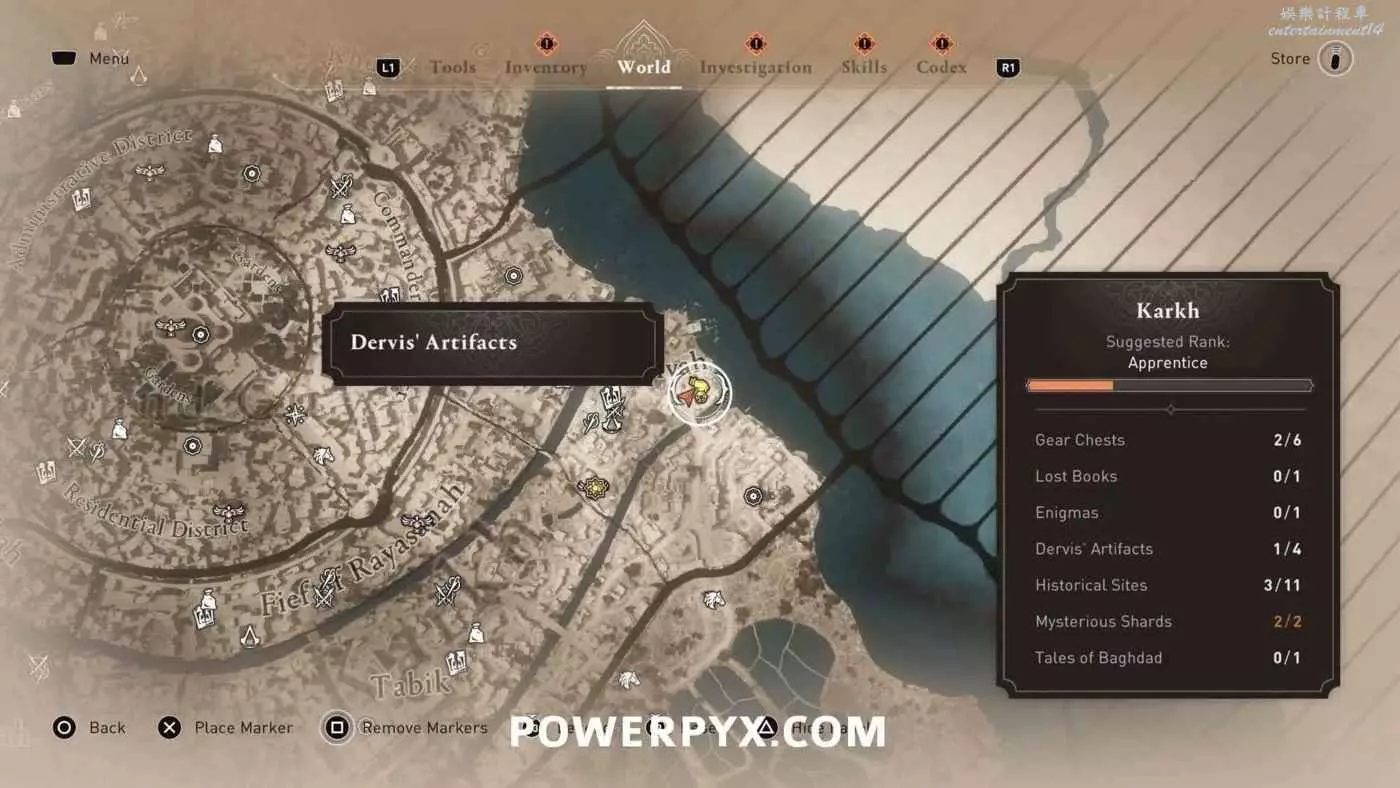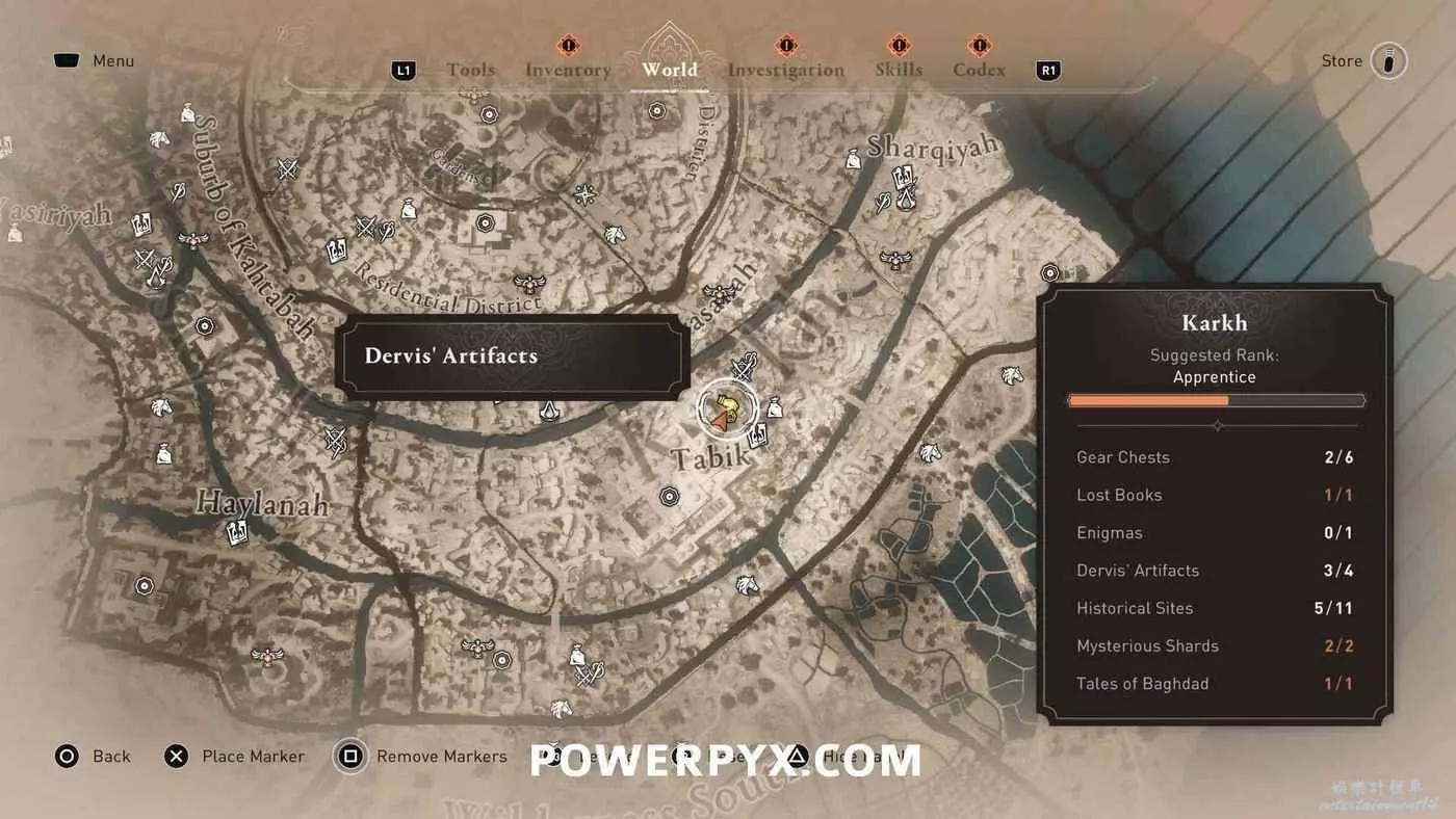 德爾維什的文物是100%完成度的需求條件之一,只有在主線劇情中遇到德爾維什之後才會出現在地圖的各個位置,時間節點在主線劇情前期(任務:德爾維什的文物),接到這個任務後,這些文物會以金色扒手圖示標記在地圖上,可以用鷹眼標記(以黃色光束顯示)。