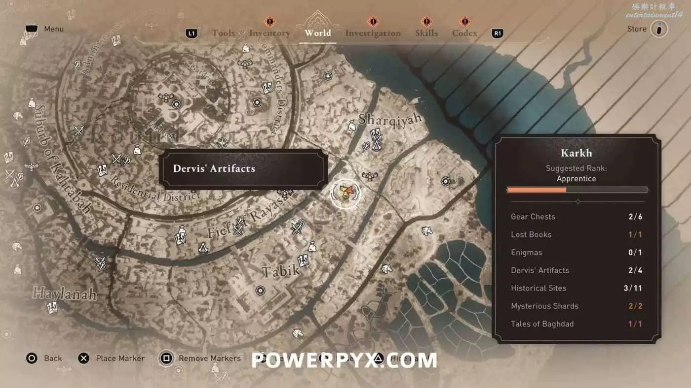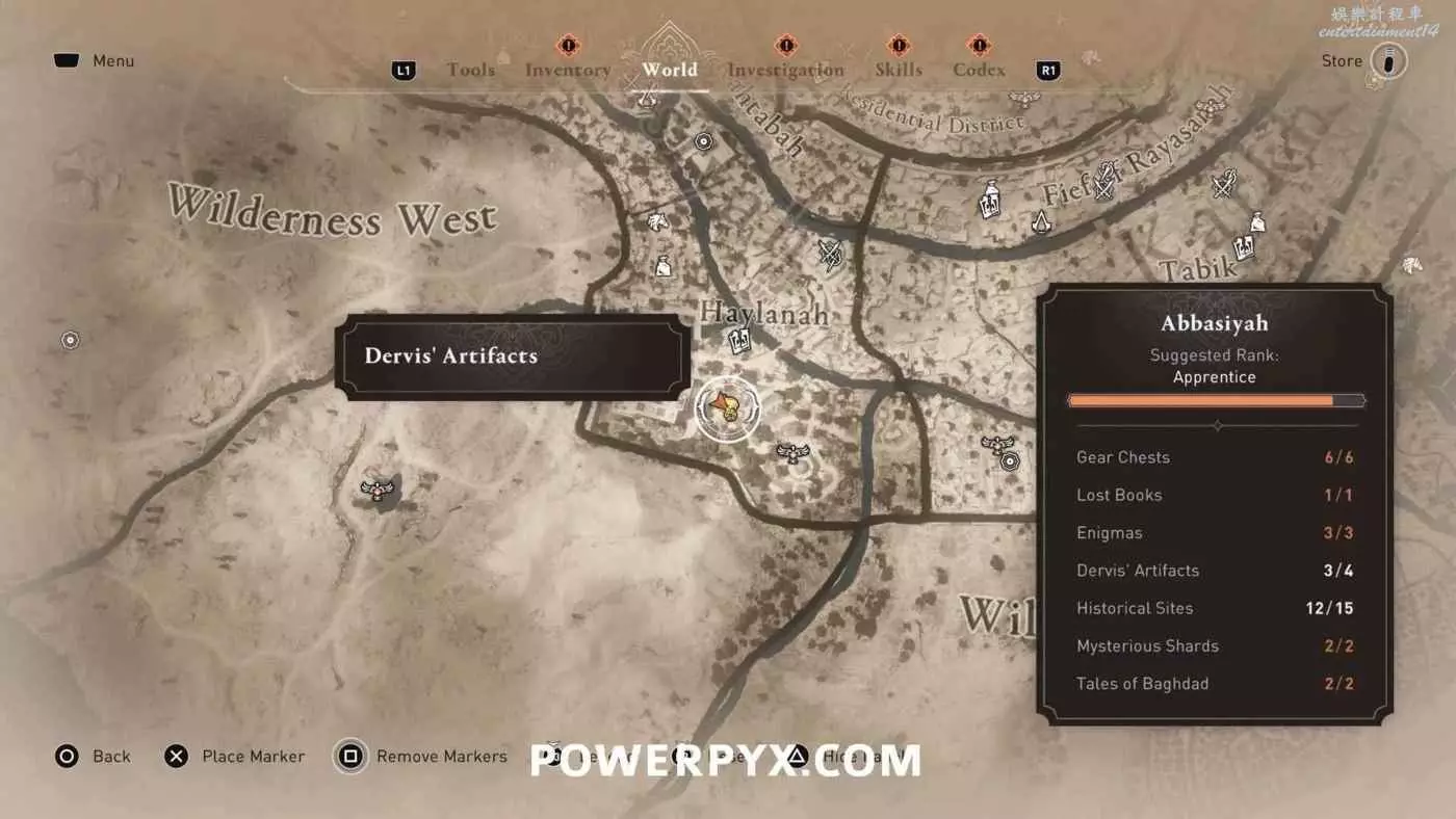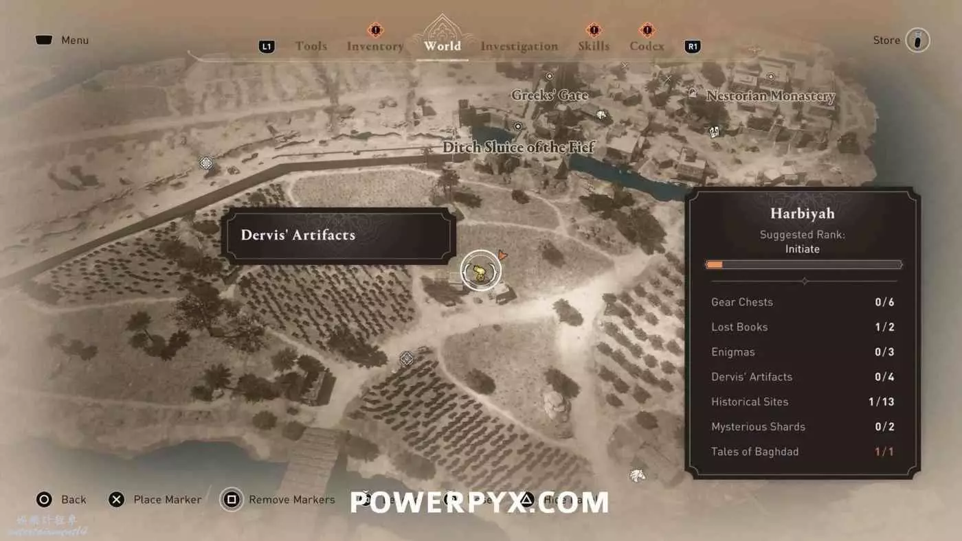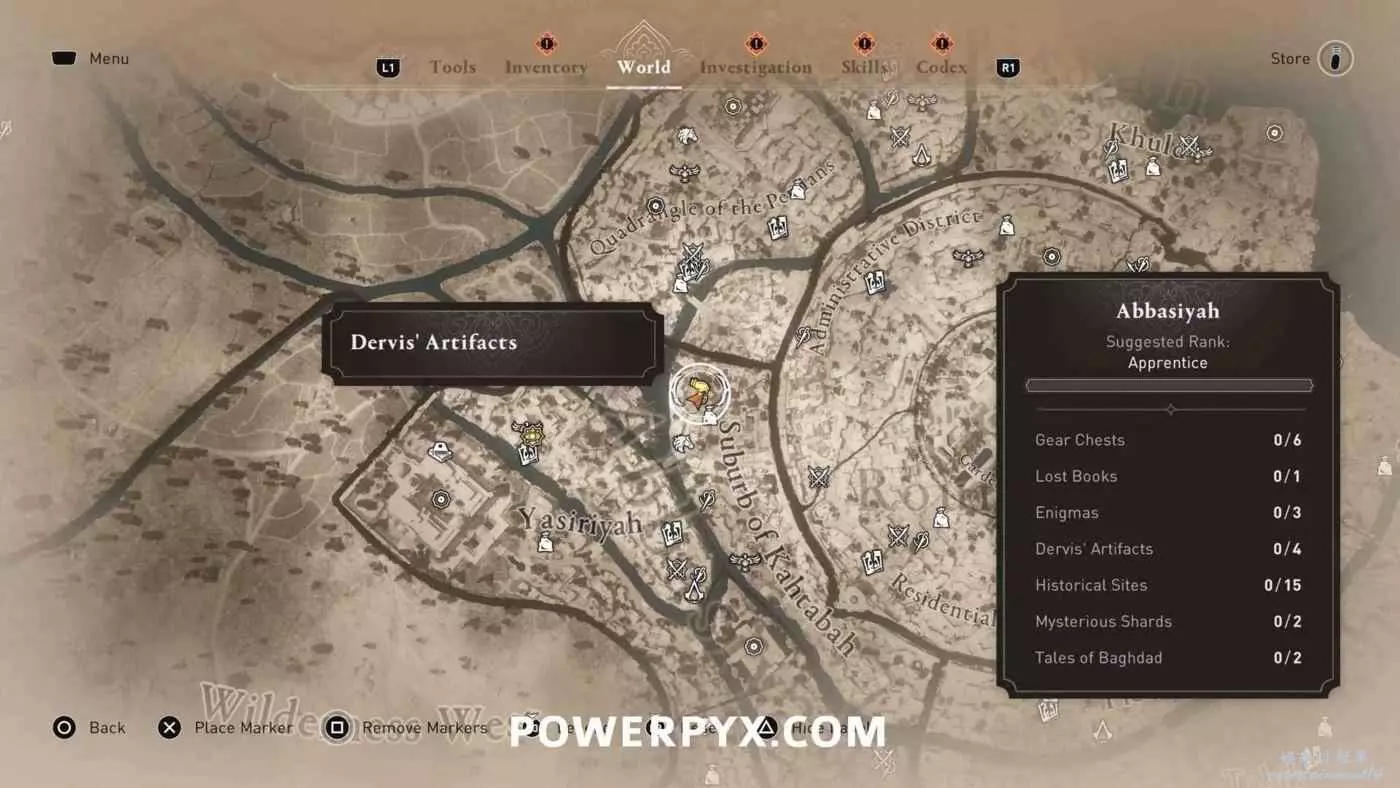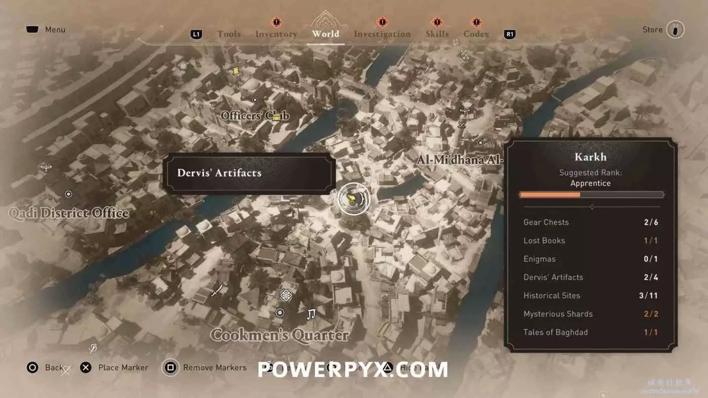 德爾維什的文物是100%完成度的需求條件之一,只有在主線劇情中遇到德爾維什之後才會出現在地圖的各個位置,時間節點在主線劇情前期(任務:德爾維什的文物),接到這個任務後,這些文物會以金色扒手圖示標記在地圖上,可以用鷹眼標記(以黃色光束顯示)。