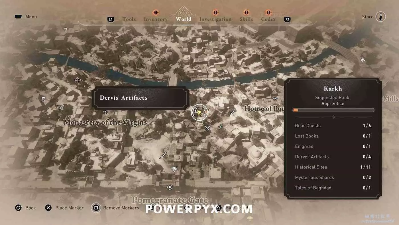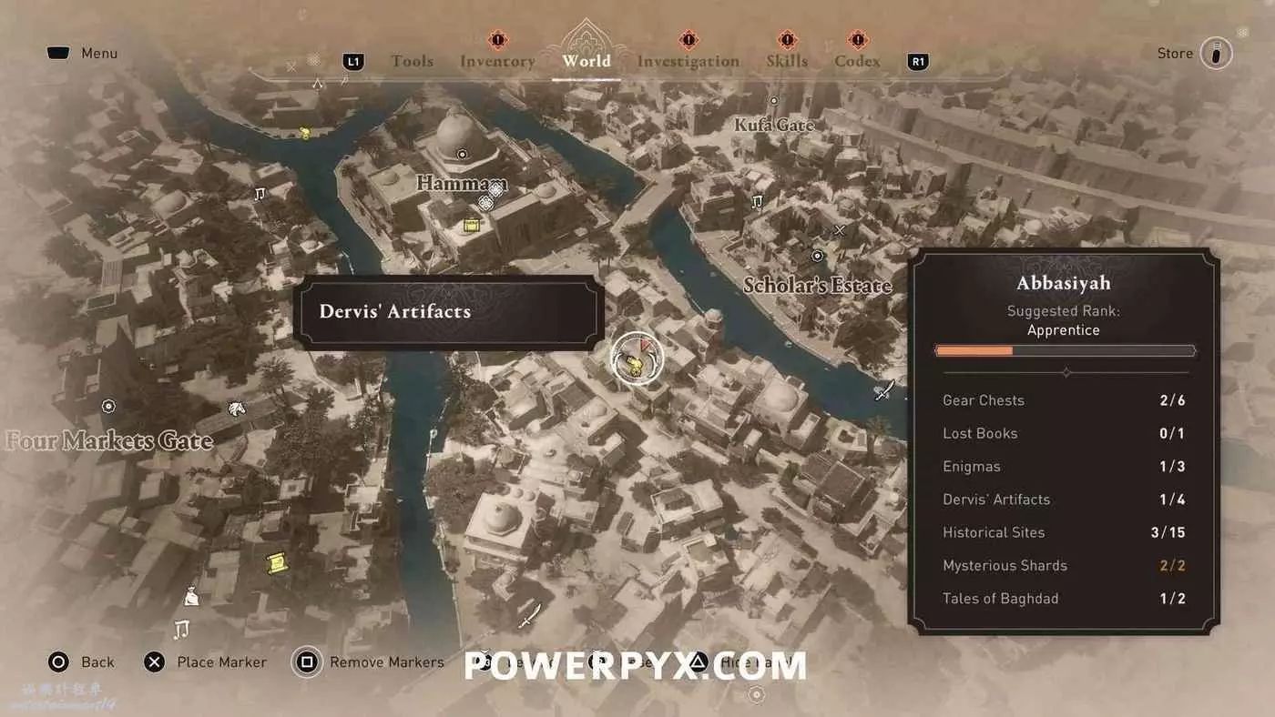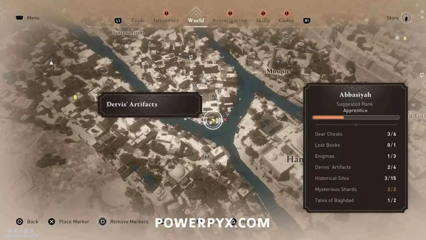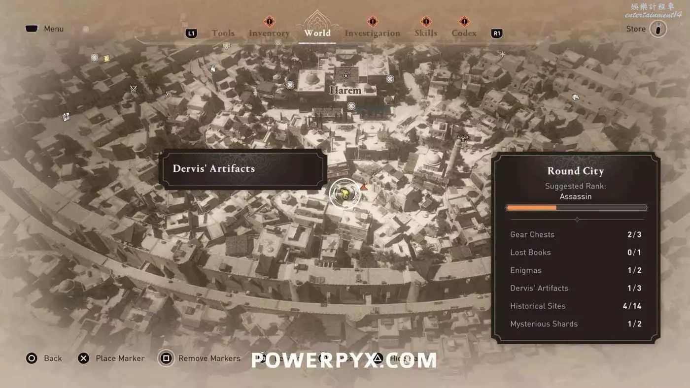 德爾維什的文物是100%完成度的需求條件之一,只有在主線劇情中遇到德爾維什之後才會出現在地圖的各個位置,時間節點在主線劇情前期(任務:德爾維什的文物),接到這個任務後,這些文物會以金色扒手圖示標記在地圖上,可以用鷹眼標記(以黃色光束顯示)。