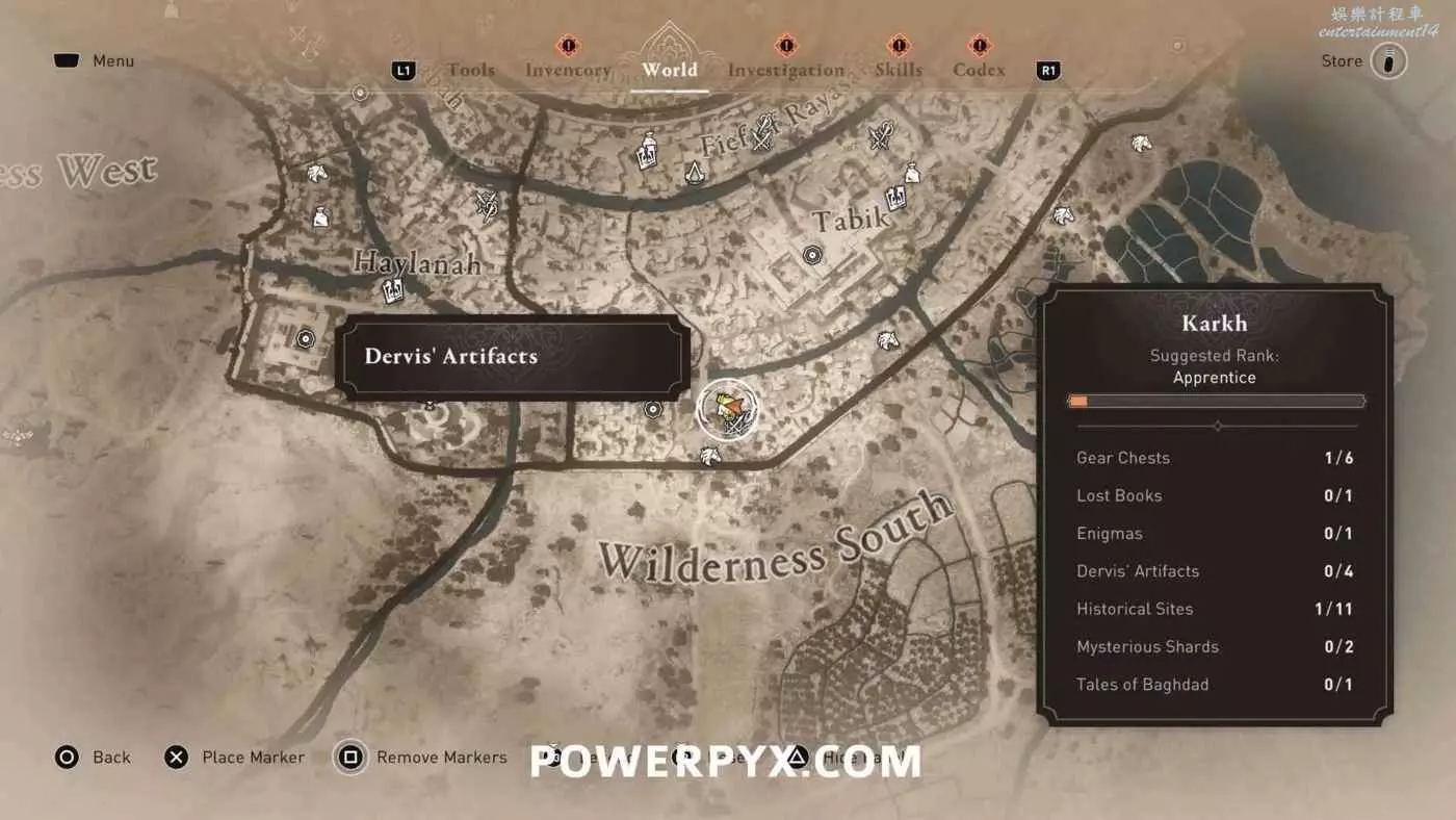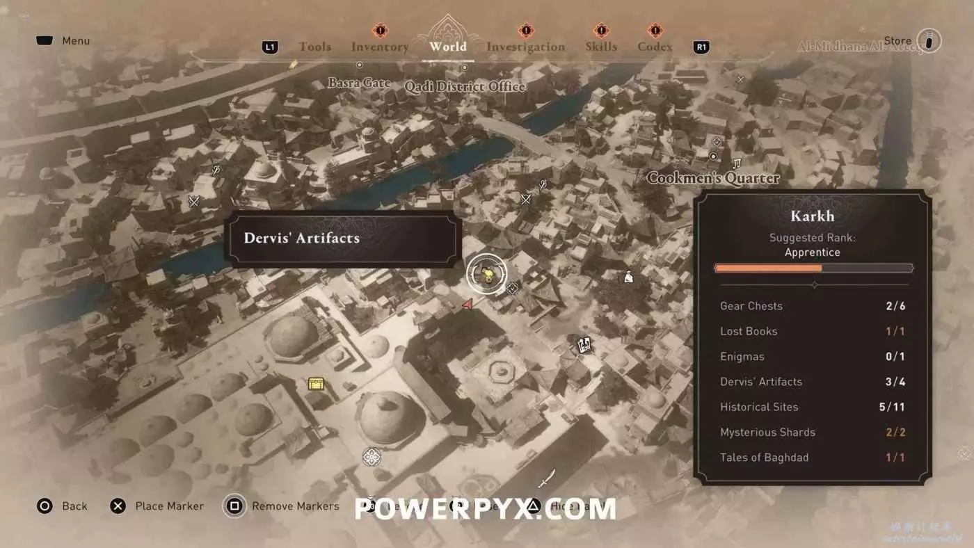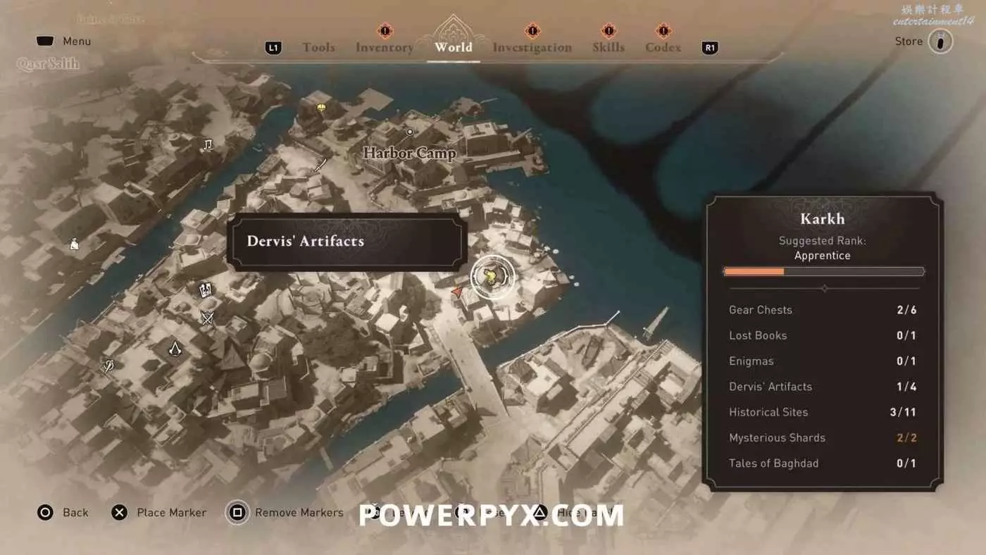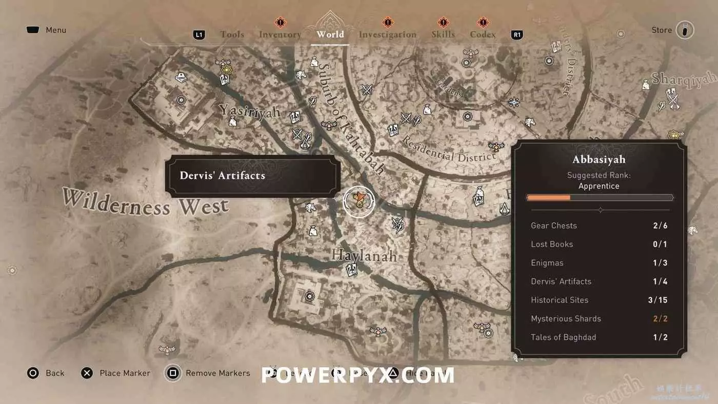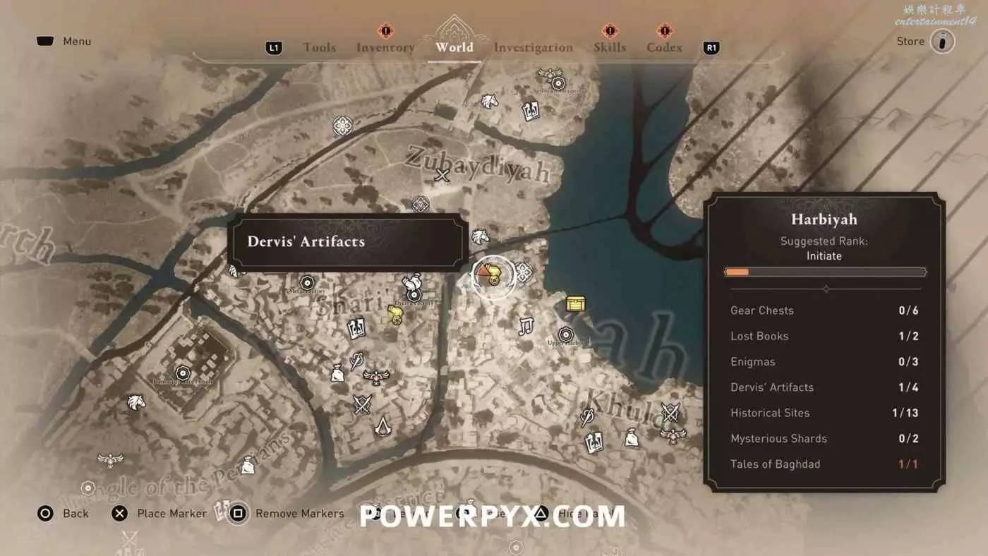 德爾維什的文物是100%完成度的需求條件之一,只有在主線劇情中遇到德爾維什之後才會出現在地圖的各個位置,時間節點在主線劇情前期(任務:德爾維什的文物),接到這個任務後,這些文物會以金色扒手圖示標記在地圖上,可以用鷹眼標記(以黃色光束顯示)。