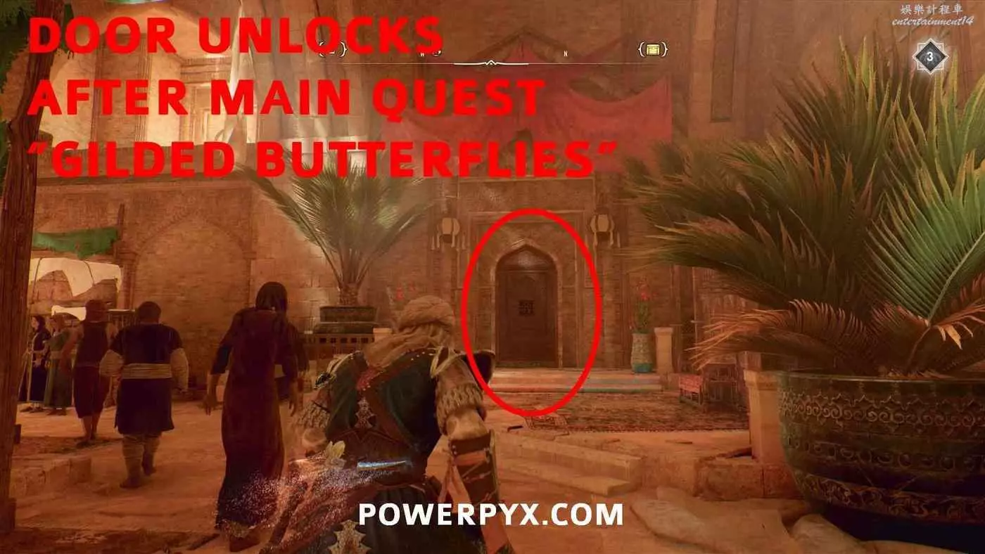 此裝備箱位於市集東北角,門是關著的,在主線任務【鍍金蝴蝶】期間會打開(此前無法開啟)。