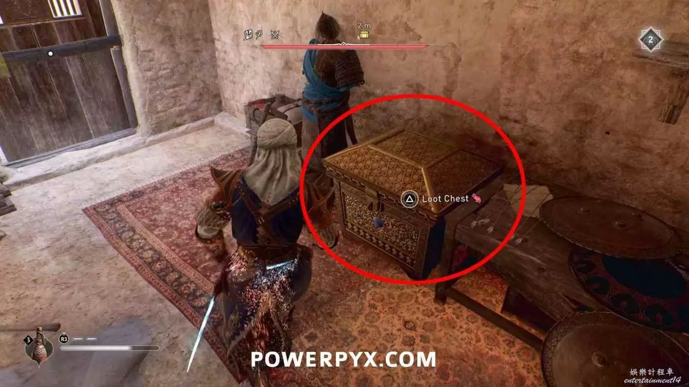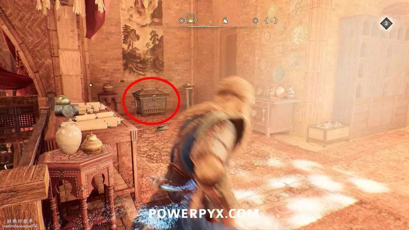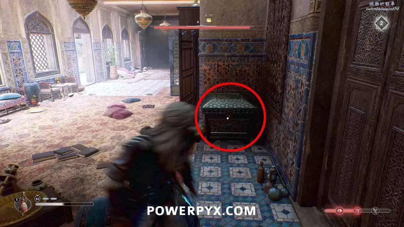 裝備箱就在上層上鎖的房間裡,跟隨主線劇情會來這裡刺殺一個主線目標,之後可以隨時返回此地點。