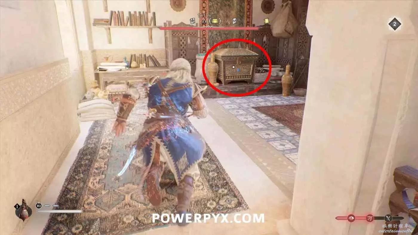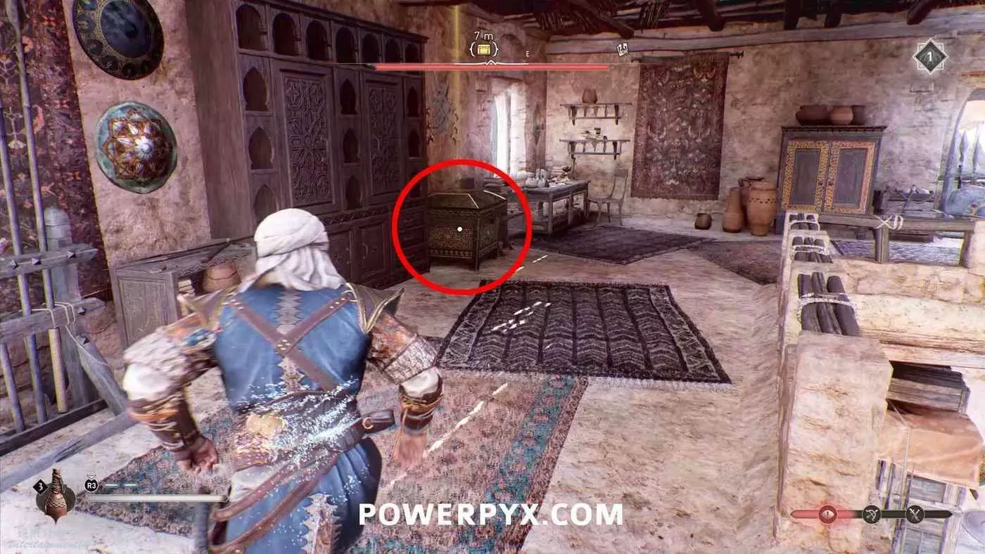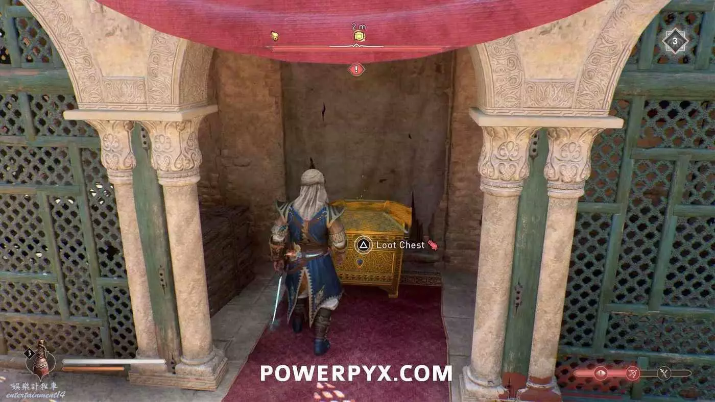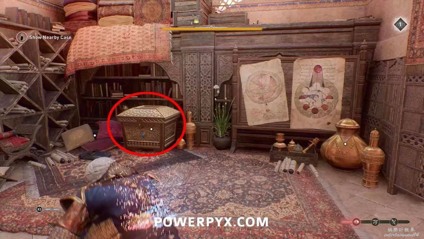 裝備箱就在上層上鎖的房間裡,跟隨主線劇情會來這裡刺殺一個主線目標,之後可以隨時返回此地點。