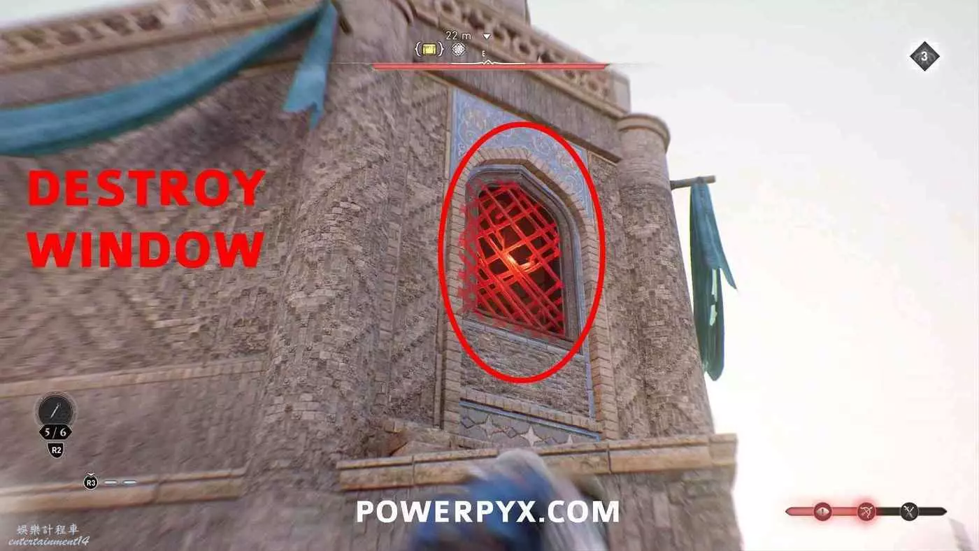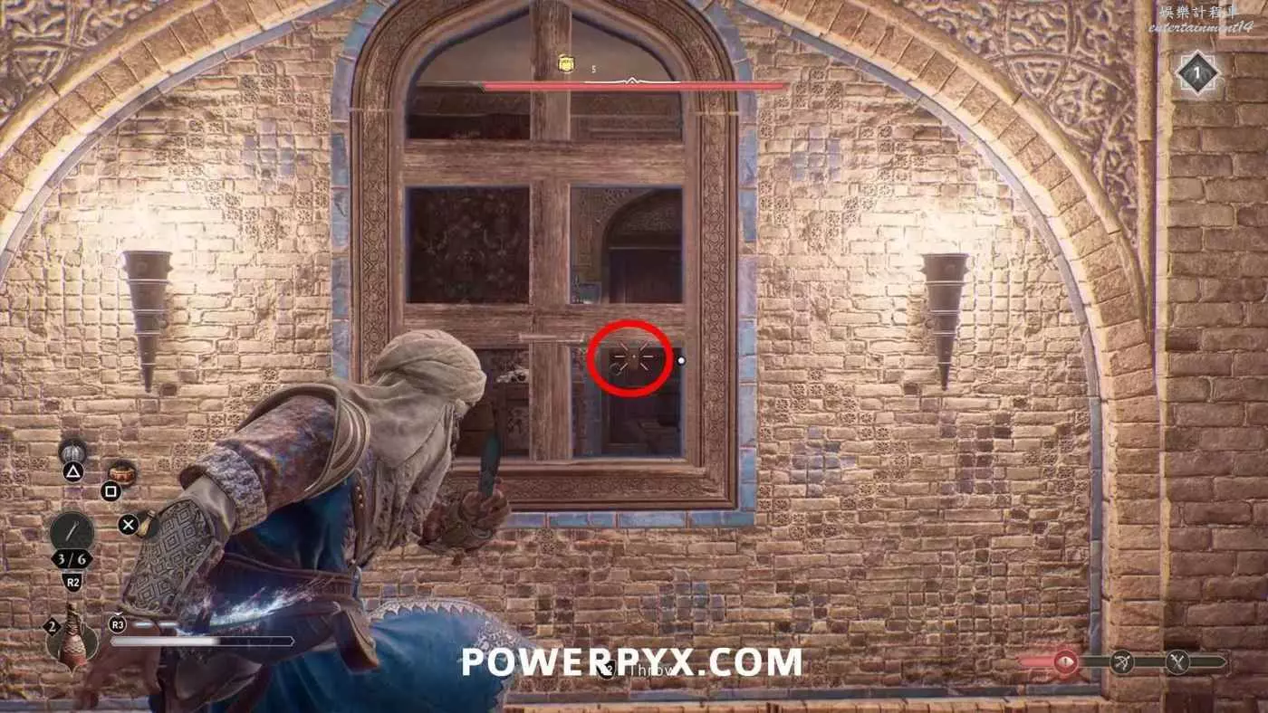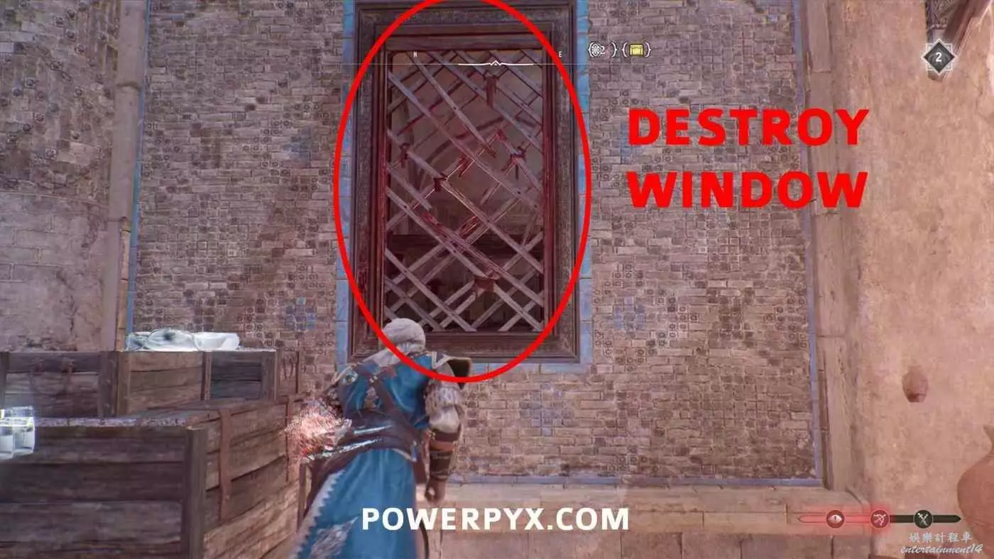 首先到土耳其浴場外的西北角,擊碎可破壞的窗戶。