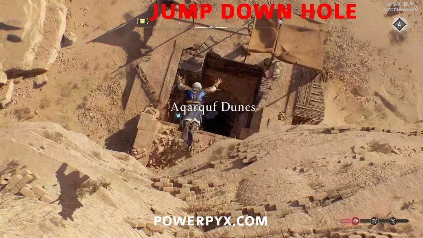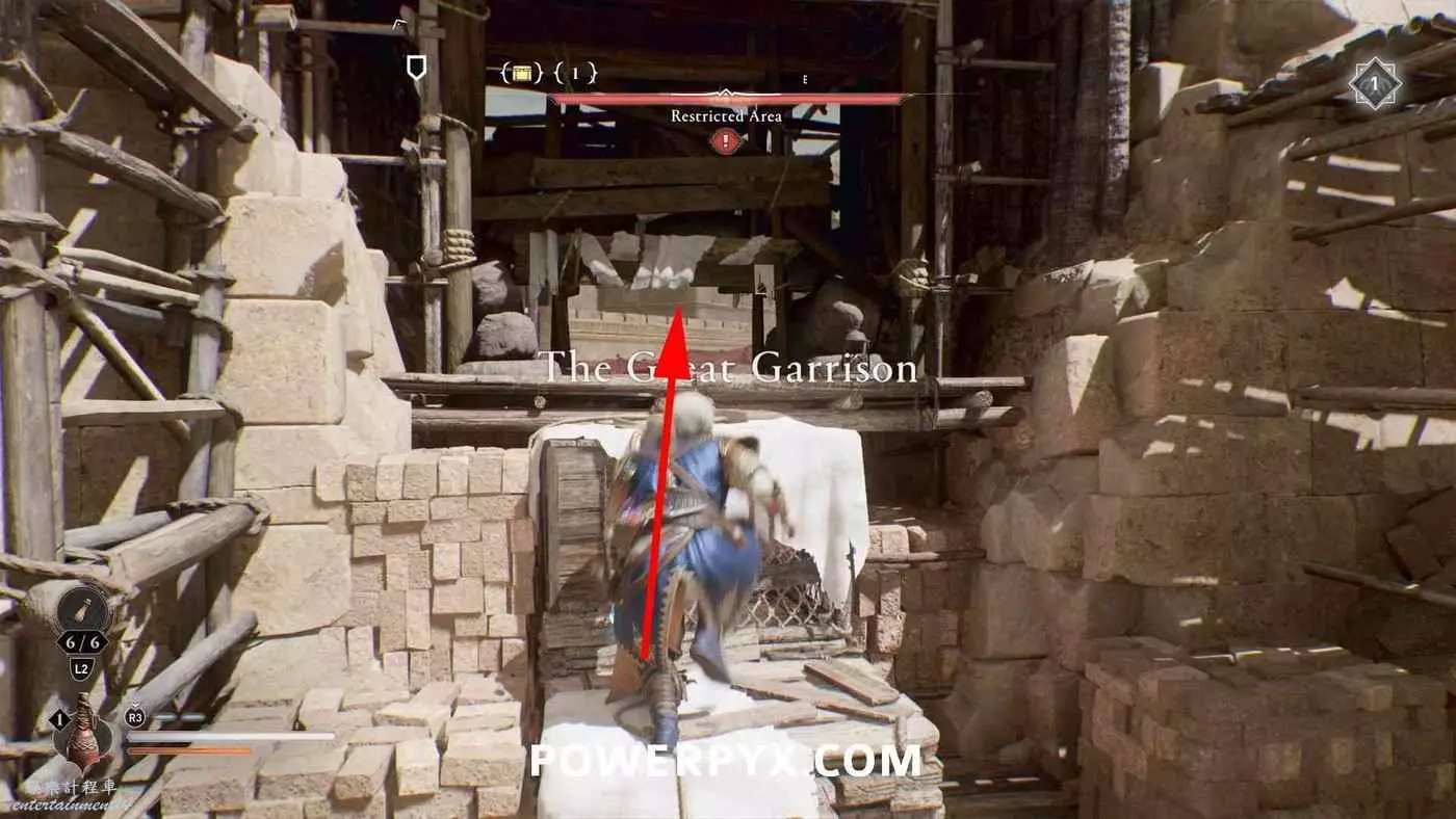 從大軍營西南邊牆壁上的缺口進入大軍營區域內,有個可以下蹲的地點。