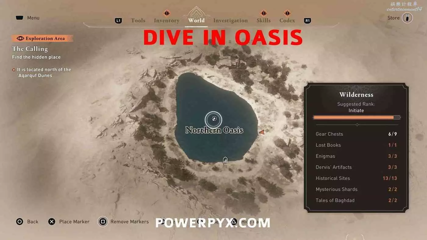 前往安巴爾(初始城鎮)東部荒野的【綠洲北部】(位置如下圖所示),潛入綠洲的湖中,沿著水下隧道一直走到盡頭可以發現一間隱藏密室。這裡有3個可以放入神秘碎片的底座,薩姆薩瑪位於左側底座,放入2個神秘碎片即可開啟。此處3個箱子總共需要放入10個碎片。神秘碎片獲取方法請參考這篇攻略。