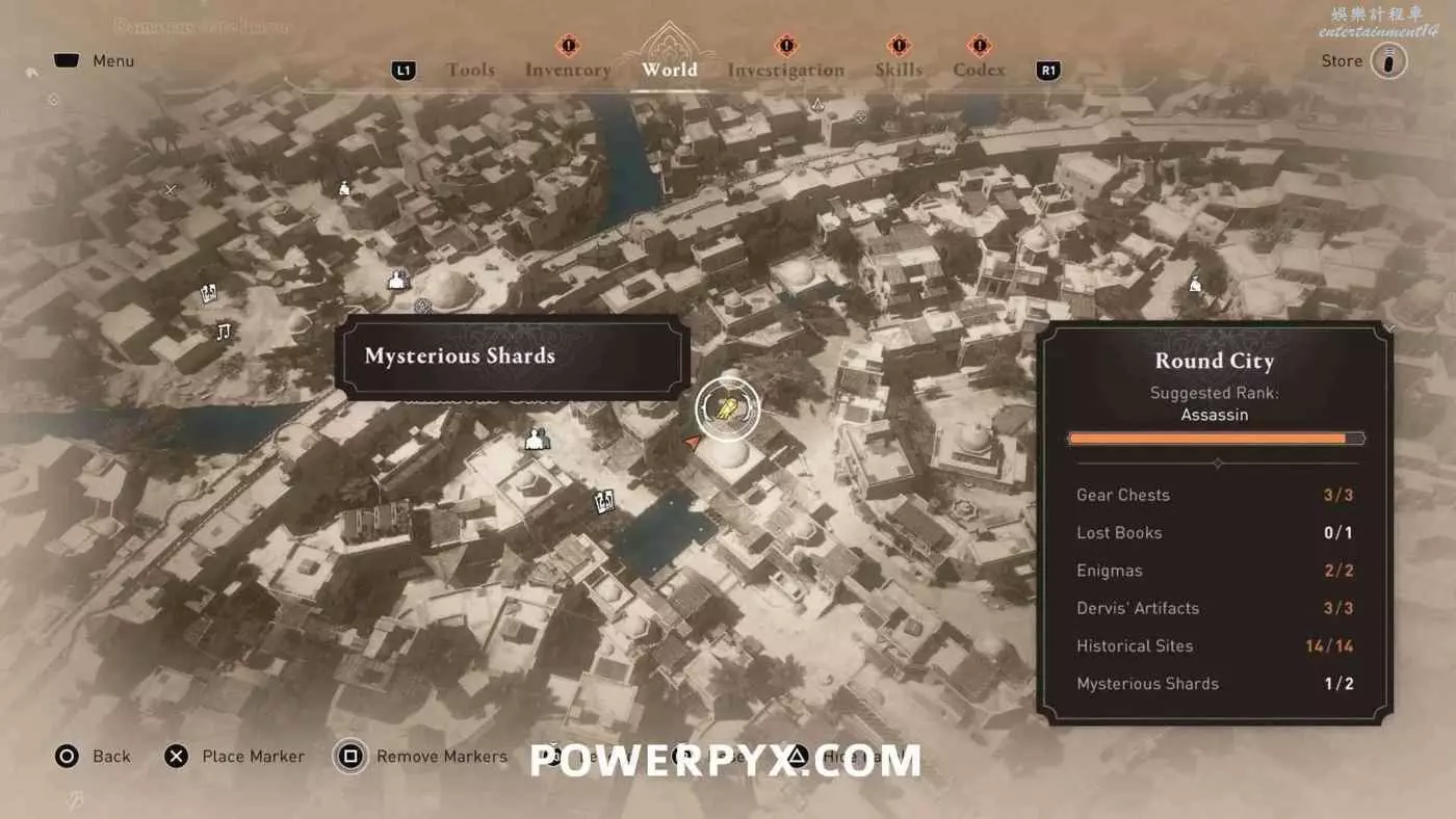 所有神秘碎片都是從穿著黑衣服帶領衛兵巡邏的NPC處偷竊獲得的,他們會在固定路線上來回走動,具體位置會略有不同,但途徑的地點都是相同的。靠近時會顯示在介面上方的羅盤上,也會在地圖上顯示標記,如果沒有出現的話也可以用鷹眼尋找,顯示為黃色光柱。所有神秘碎片都不用擔心漏掉,通關後依然可以返回收集。