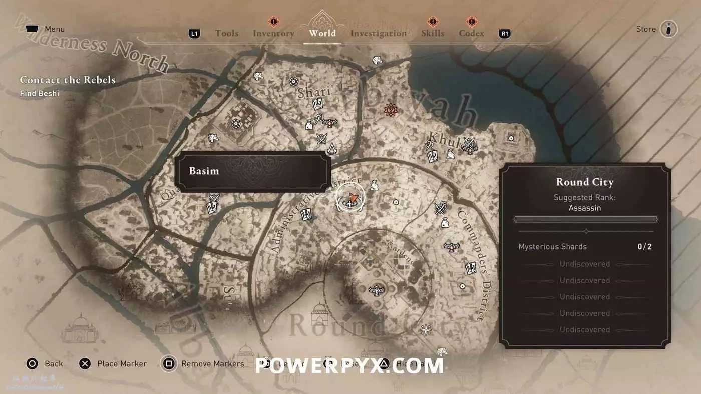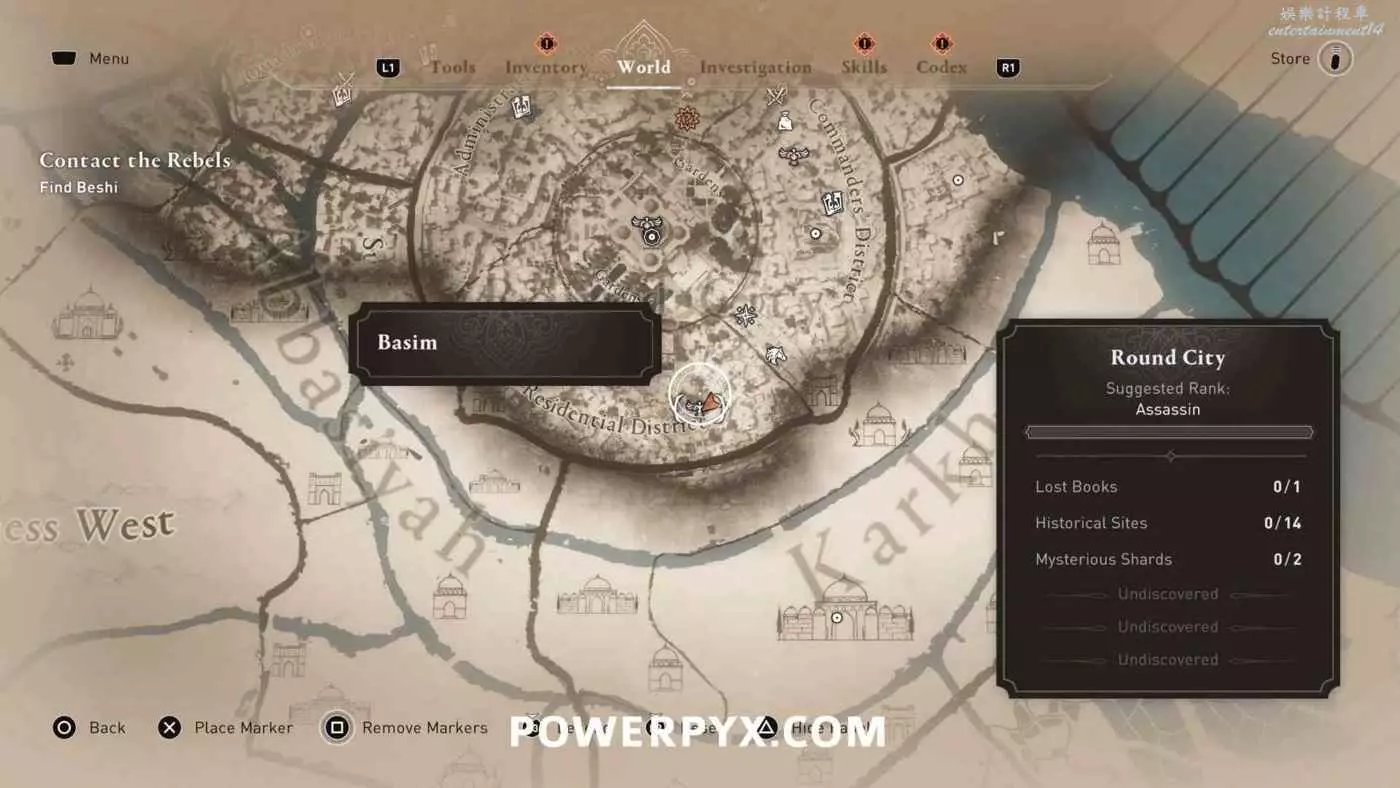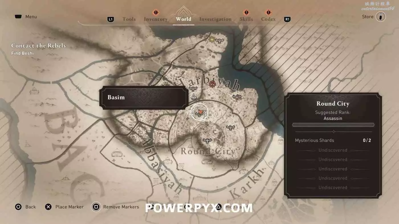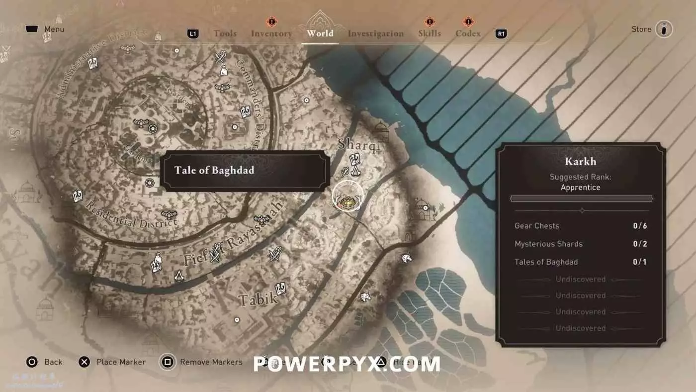位於地圖中間的宮殿頂部,要進入此區域需要從南邊後宮靠近圓城的牆,前往住宅區後宮(參考下圖角色所在位置)的陽台跳過去,或者從它西北邊翻過圍牆。除此之外也可以從南邊牆壁裂縫中擠過去,進入宮殿所在區域後沿著東邊的小路往上走,爬上屋頂即可。