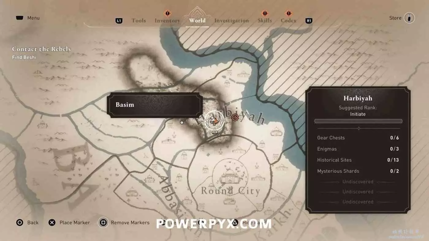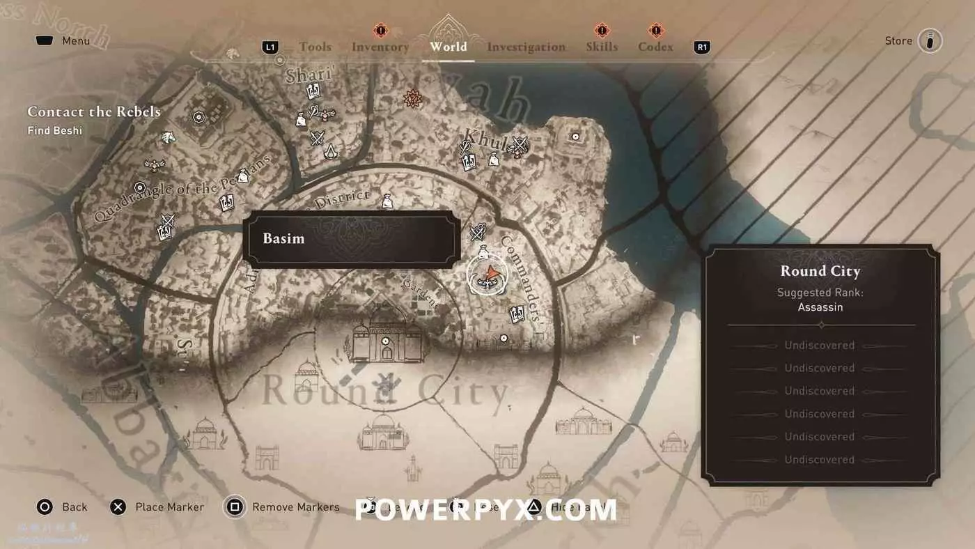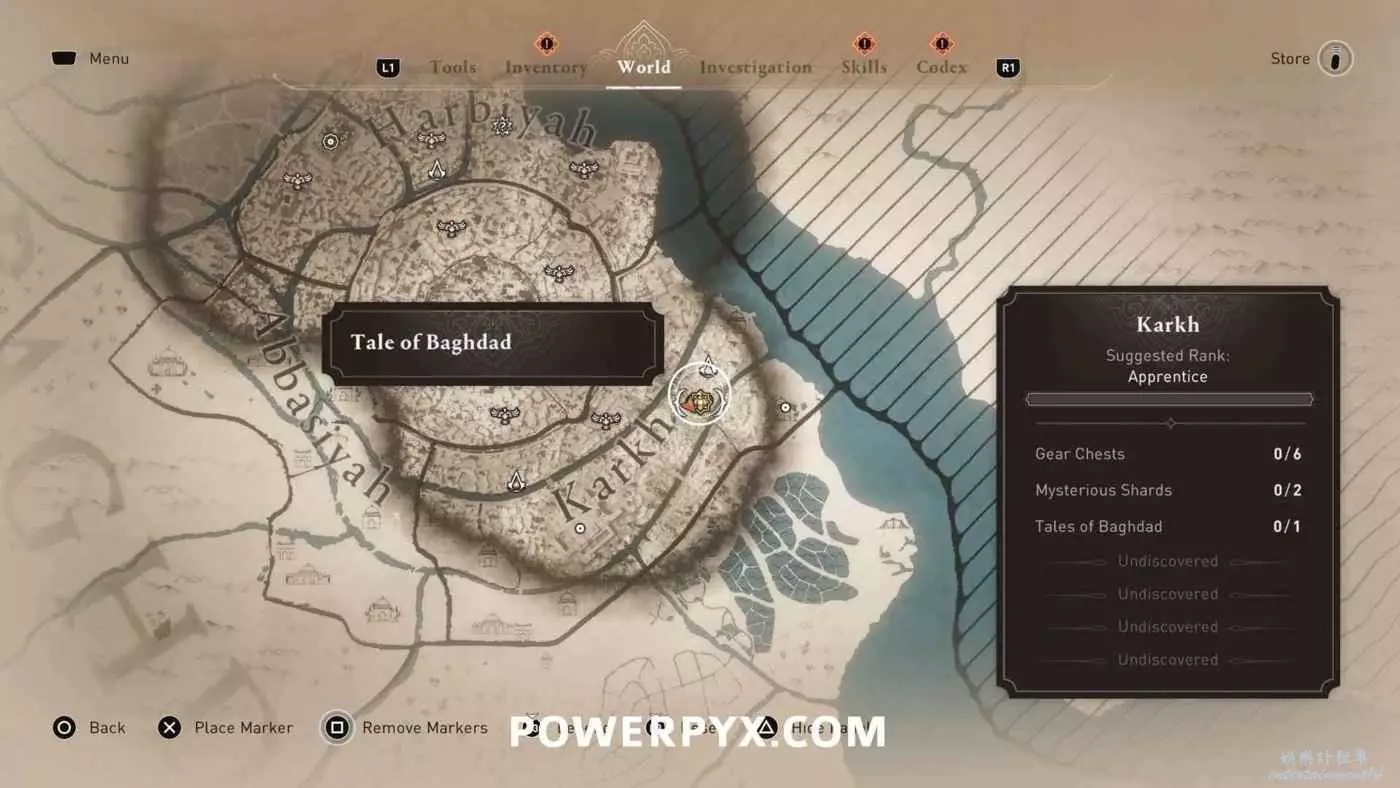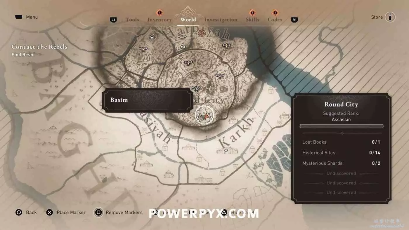 位於地圖中間的宮殿頂部,要進入此區域需要從南邊後宮靠近圓城的牆,前往住宅區後宮(參考下圖角色所在位置)的陽台跳過去,或者從它西北邊翻過圍牆。除此之外也可以從南邊牆壁裂縫中擠過去,進入宮殿所在區域後沿著東邊的小路往上走,爬上屋頂即可。