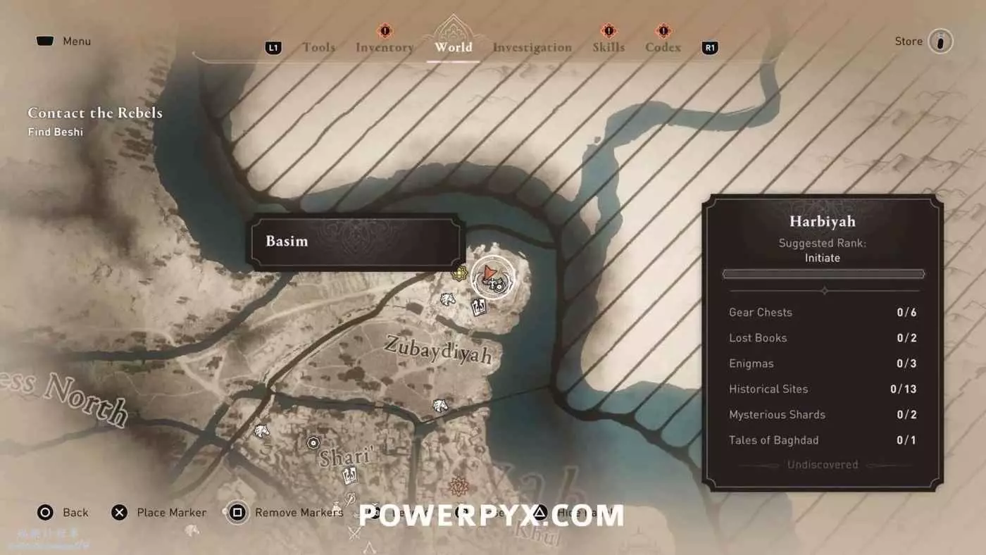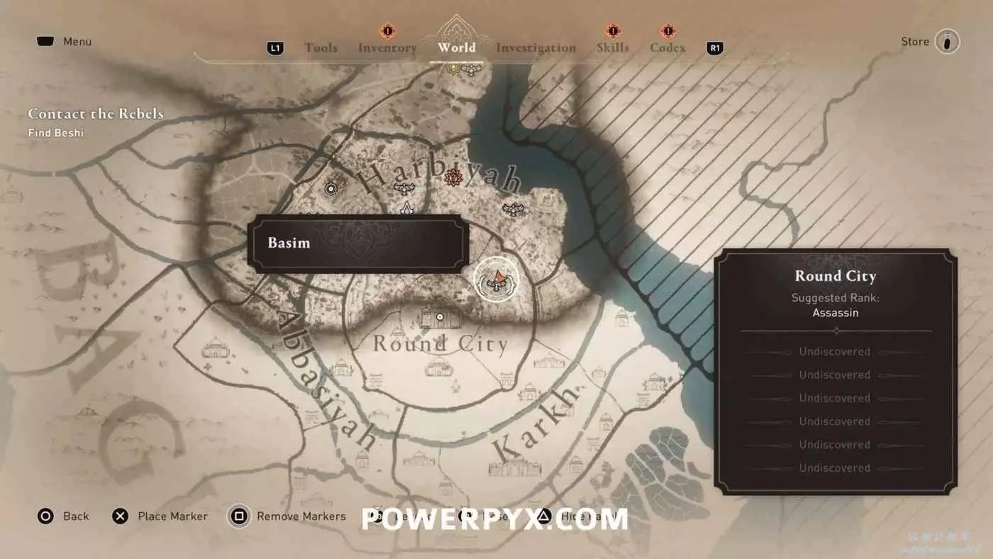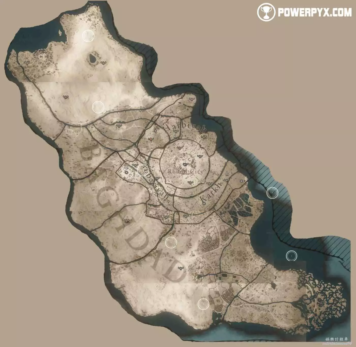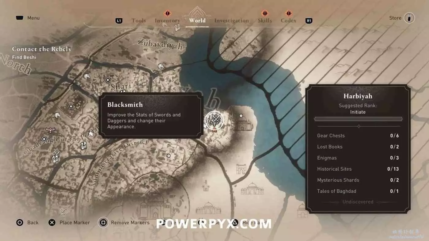 位於地圖中間的宮殿頂部,要進入此區域需要從南邊後宮靠近圓城的牆,前往住宅區後宮(參考下圖角色所在位置)的陽台跳過去,或者從它西北邊翻過圍牆。除此之外也可以從南邊牆壁裂縫中擠過去,進入宮殿所在區域後沿著東邊的小路往上走,爬上屋頂即可。