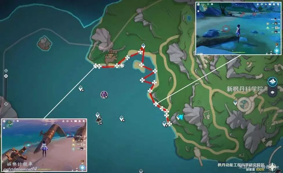 5,新楓丹科學院西南部岸邊,距離傳送錨點較遠,看需求採集