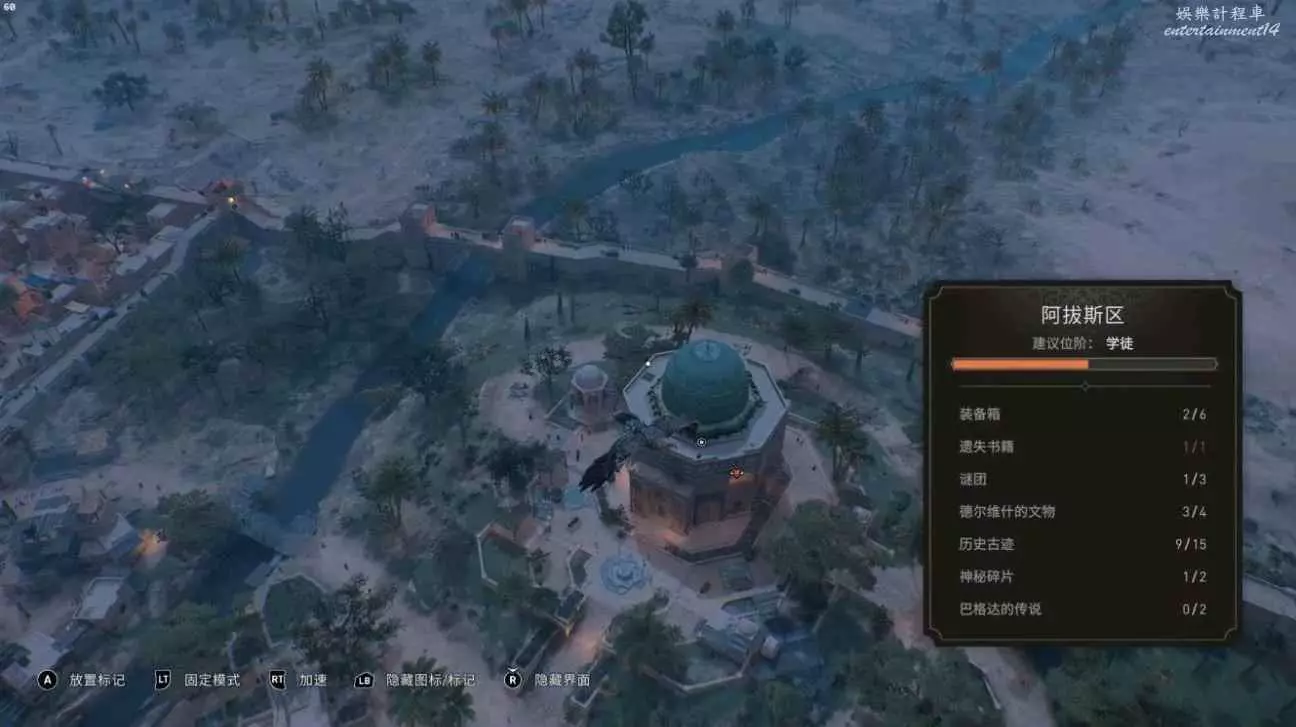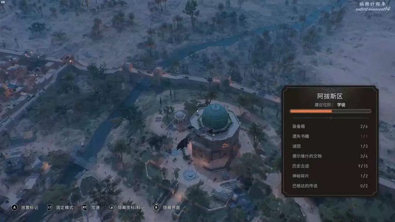 刺客教條 幻象 圓頂之樂謎團解謎教學 6 10 月 2023-10-06 廣告 作者:E叔-木板披風 來源:刺客教條吧 地點在阿拔斯區左下的同步點——驢行圓頂 藏寶圖(完成猴就看不到了)所示線索為城牆、穿牆而過的河流、藍色圓頂,城牆另一邊是荒漠 具體位置如下,同步點右下最外圈的水坑邊上,旁邊有個亭子作為標誌 獎勵物品為一個護符。