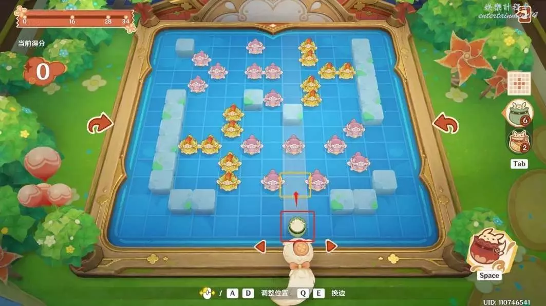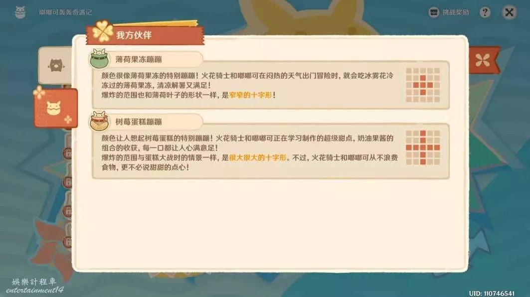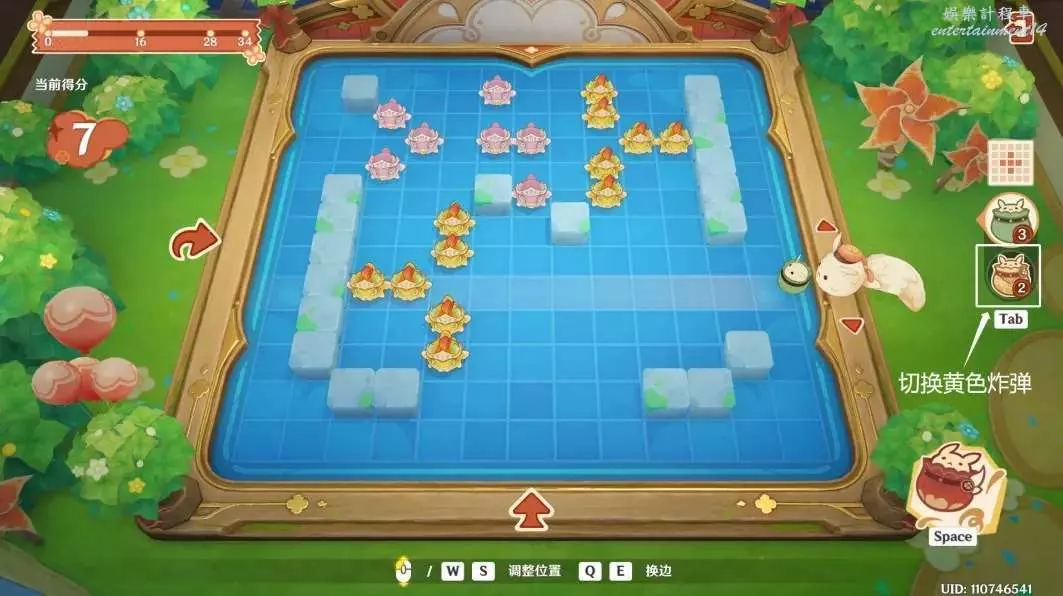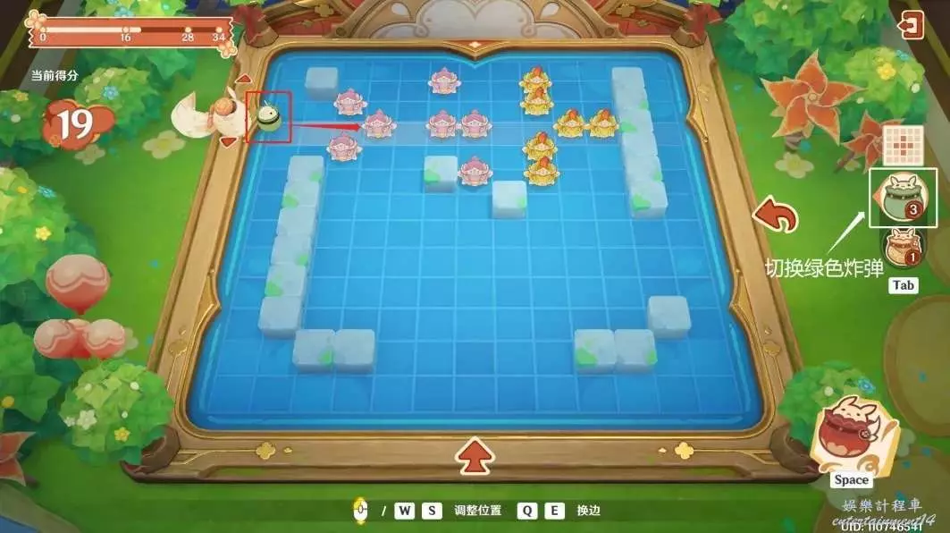 綠色嘟嘟炸十字格子,黃色嘟嘟炸更大的十字格子。