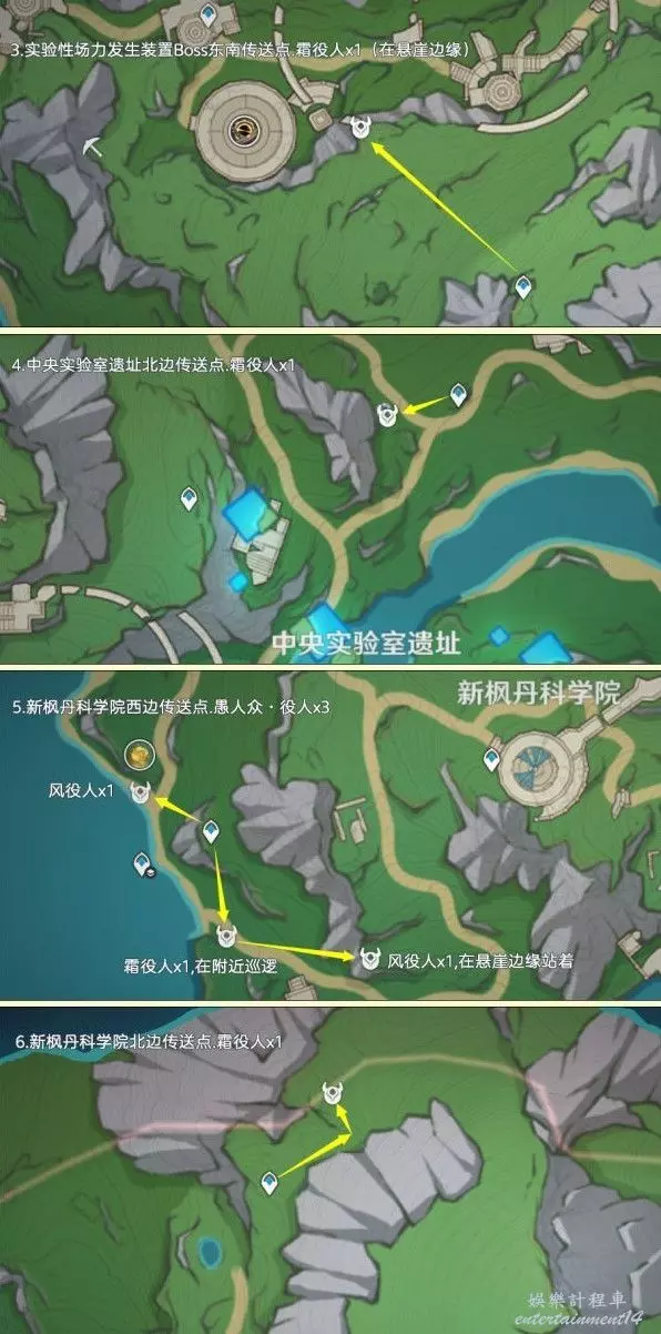 愚人眾·役人目前僅分佈在楓丹4.1版本陸地區域,總共有15只,其中有1只是楓丹傳奇怪,建議跳過,很難打