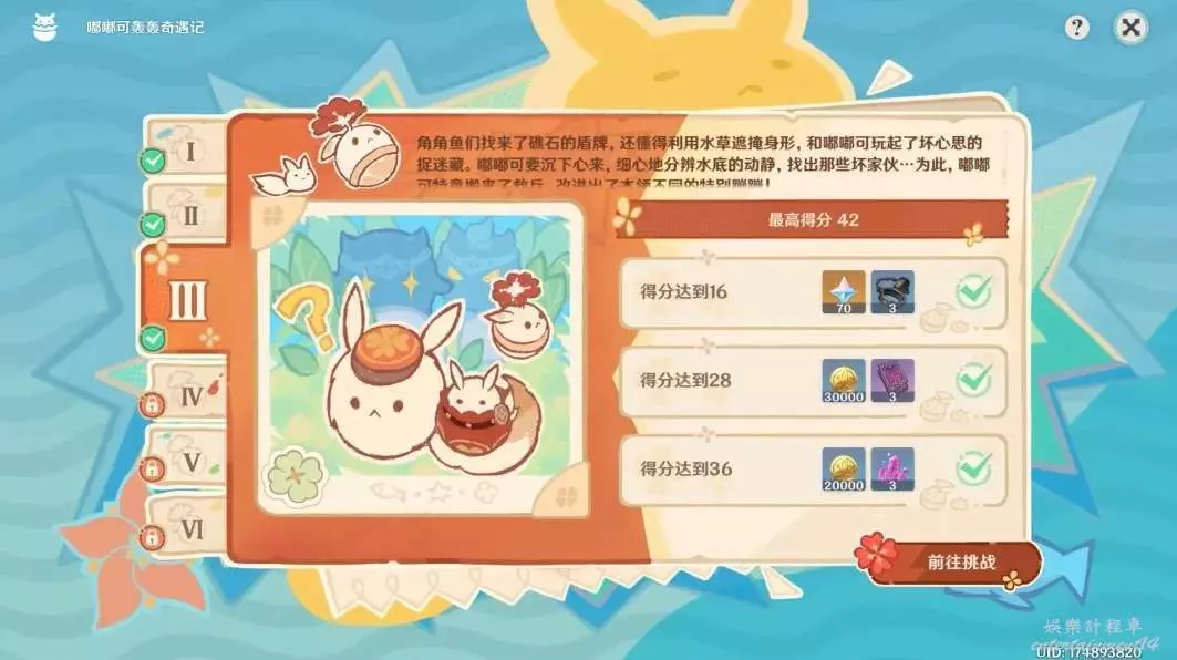 使用蹦蹦炸彈炸魚可獲得積分,不同的魚獲得的積分不同,達到指定積分可獲得對應的獎勵。