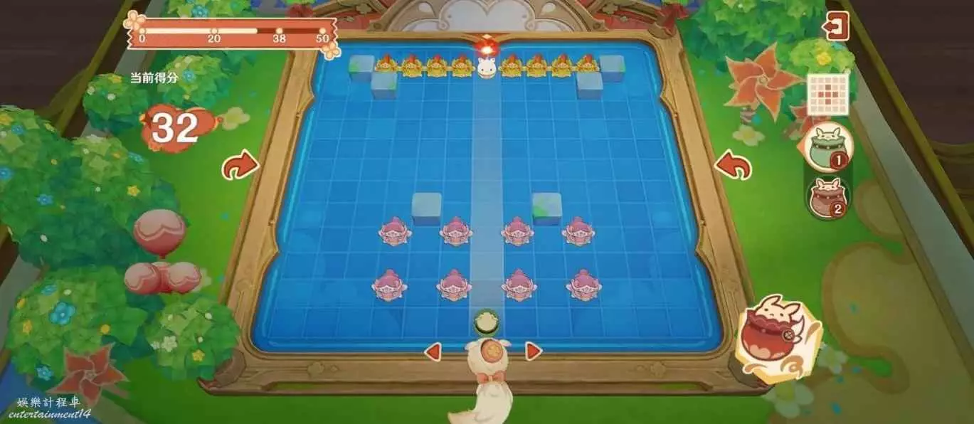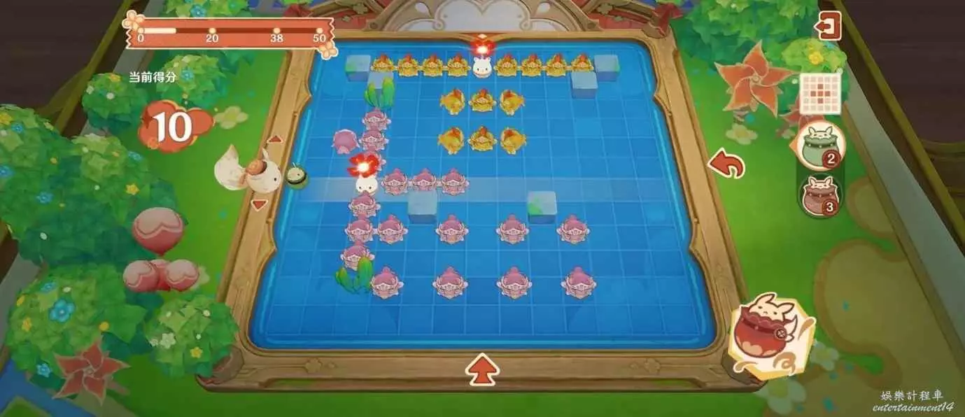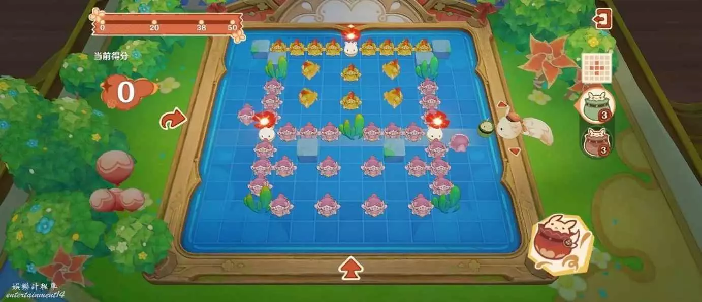 原神 (Genshin Impact) 嘟嘟可轟轟奇遇記第四天攻略 9 10 月 2023-10-09 廣告 作者:雨落傾城解憂愁 來源:米遊社論壇 1、在如圖位置右側對準「大大砰砰詭雷」,注意不要被跑來跑去的擋住。 左邊也是,對準……額…… 2、換成九宮格的,在如圖位置釋放。到達中間位置引爆。 3、換小十字的從下往上中間。 4、九宮格的如圖位置釋放,中間時引爆。 然後就能獲得56分了。