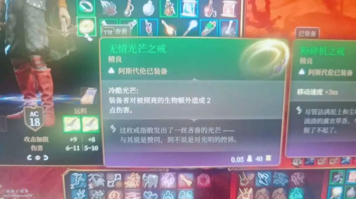 看這個戒指描述,對被照亮的生物造成額外兩點傷害。