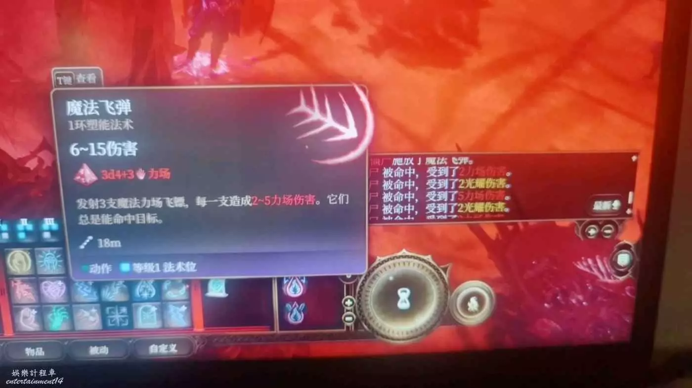 猛的來了,魔法飛彈,每一發都附加2光耀傷害!!而且看描述還不是bug。