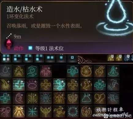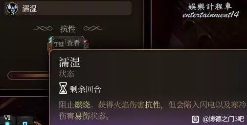當以造水術/投擲水瓶創造水面地表時,創造地表區域內的生物會被施加濡濕狀態,此狀態下的生物會失去冰霜與閃電抗性並且對其易傷。
