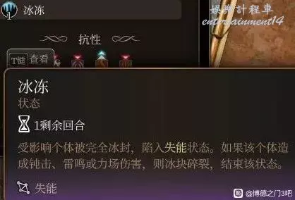 濡濕狀態的生物在被施加凍僵狀態時會轉變為冰凍狀態,冰凍狀態下失能一回合並對三種傷害有個一次性的易傷,但寒霜易傷和閃電易傷會被覆蓋。