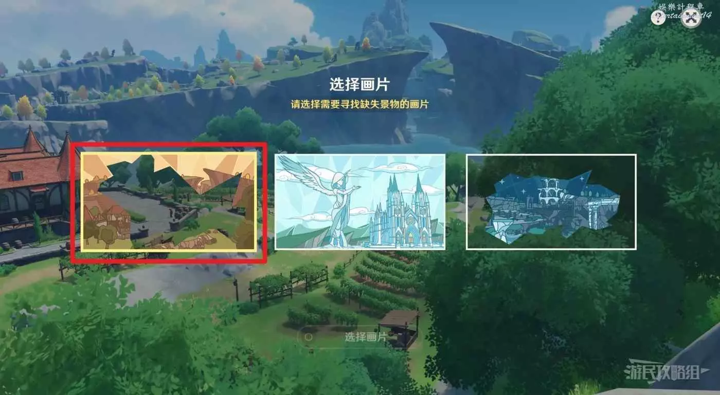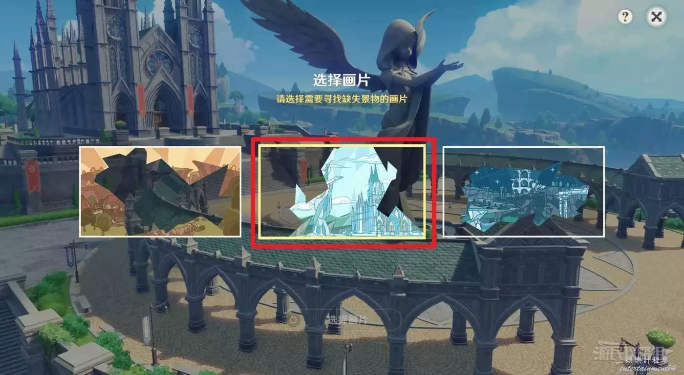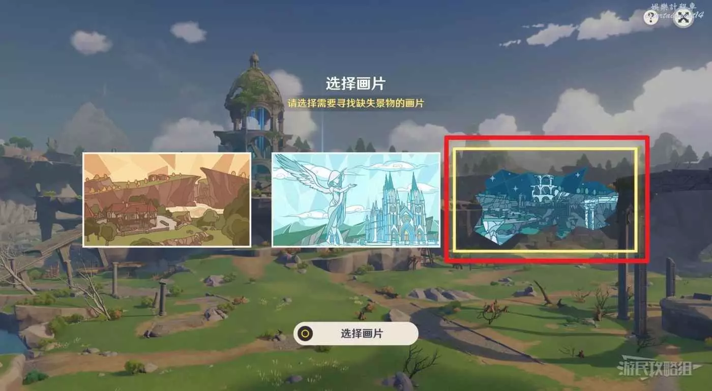 前往目標位置與之互動,選擇第三張畫片。