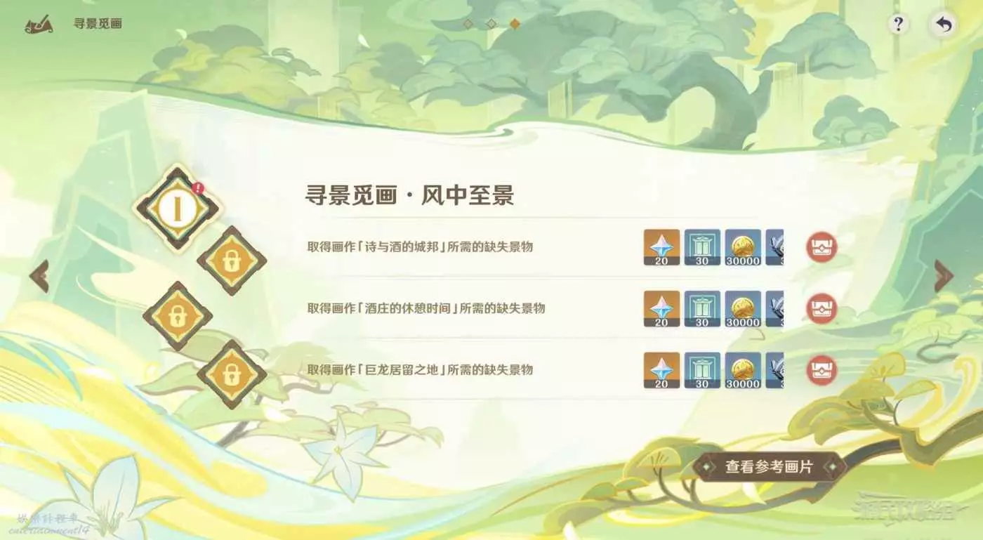 打開活動介面可以查看第一天的三張參考畫片。