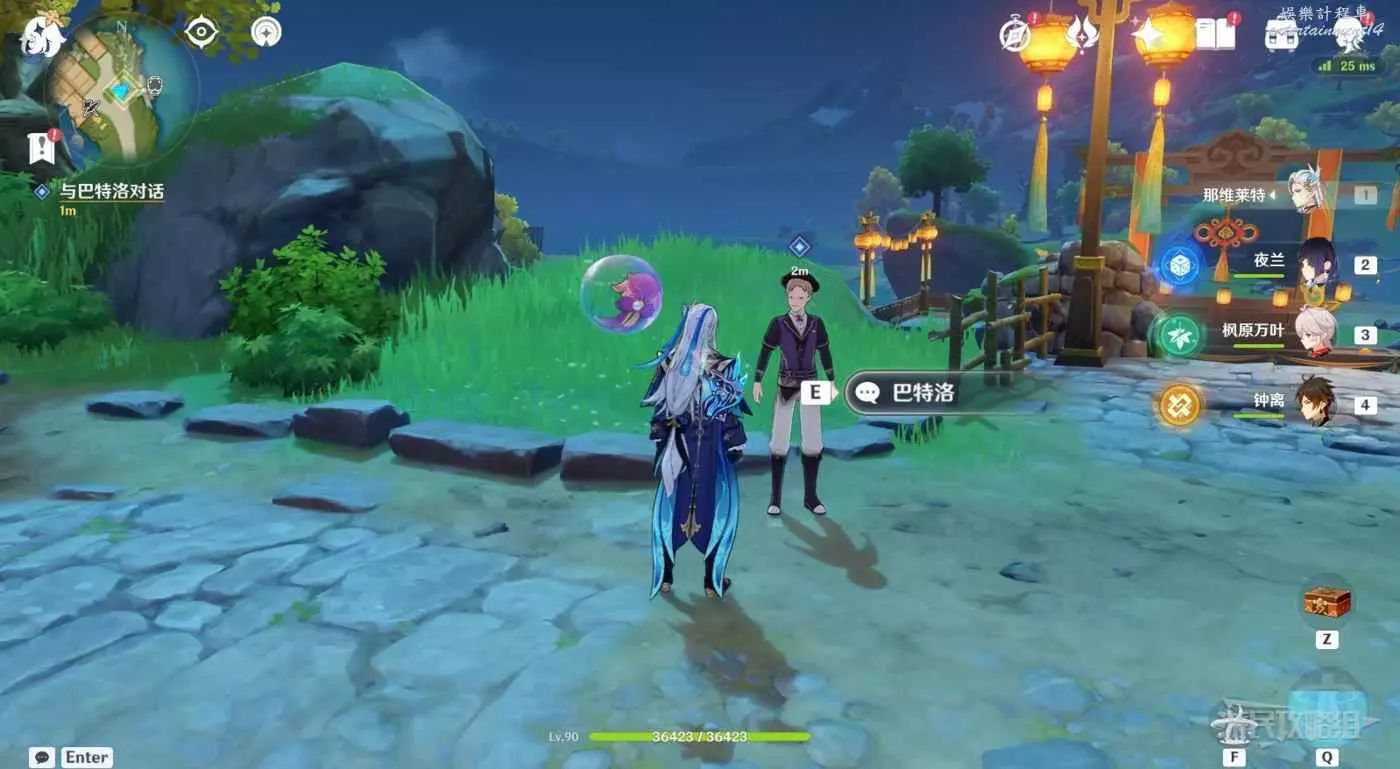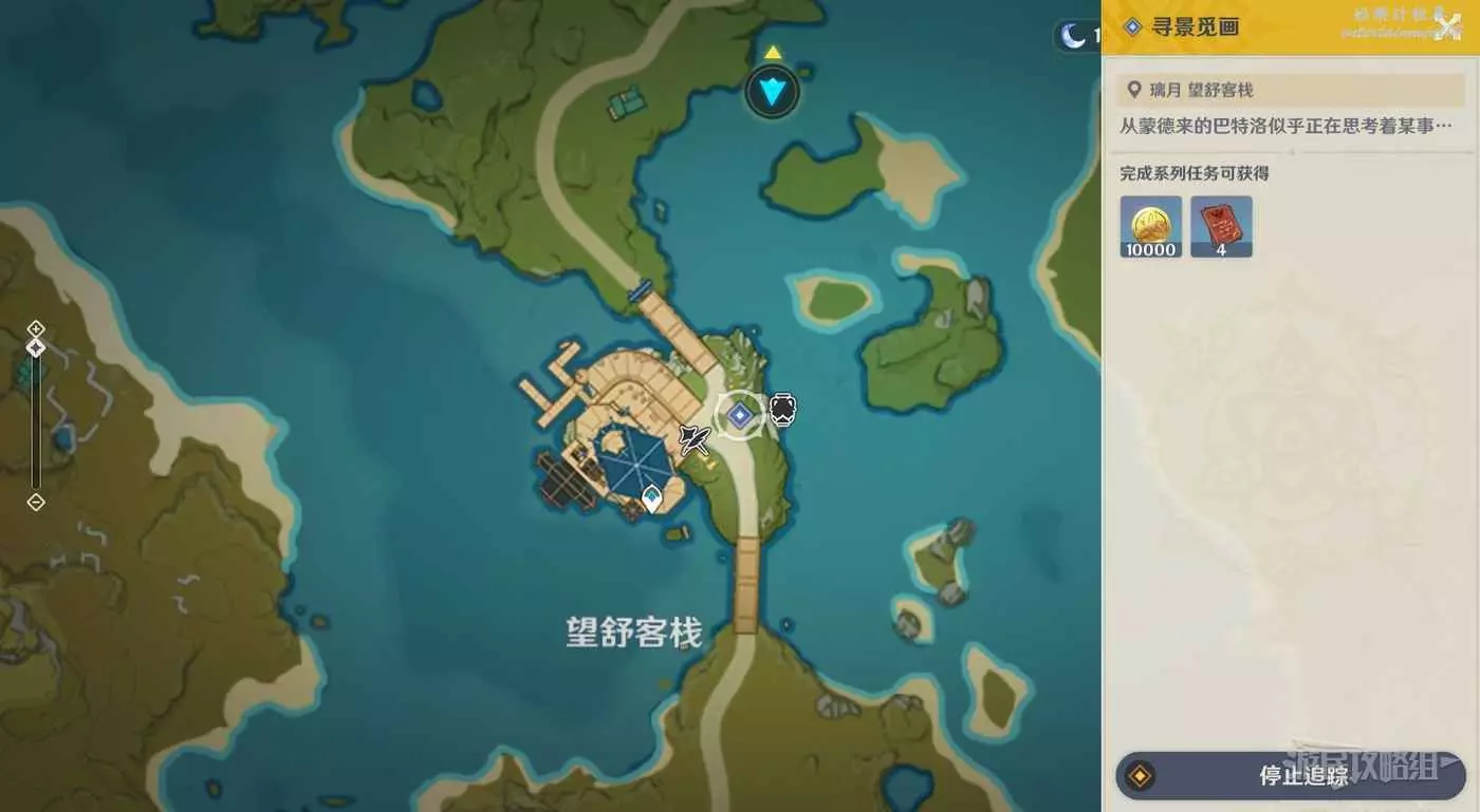 傳送到望舒客棧,跟隨任務指引前往目標位置,與巴特洛對話。