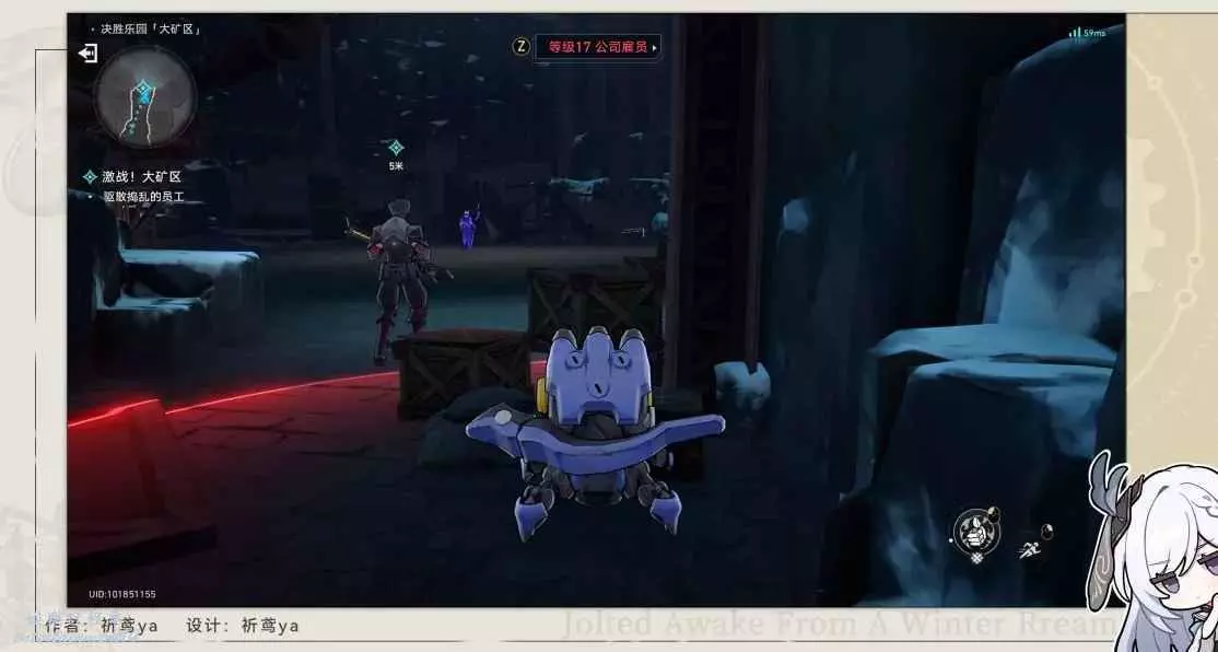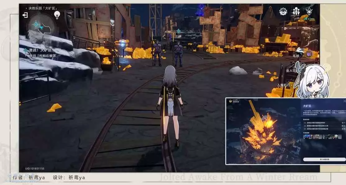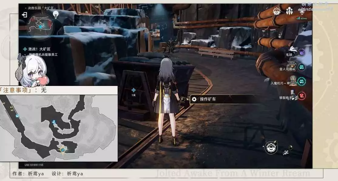 5,跟隨指引來到下一處,同樣是等雇員往回走時,我們繞到礦車後面引爆即可