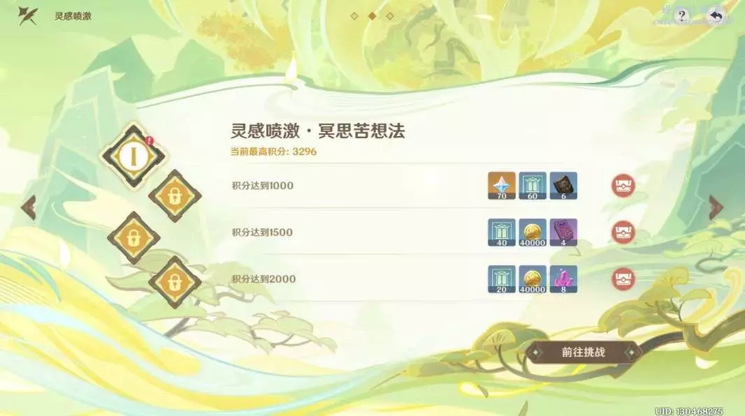本關buff適合永凍隊、蒸發隊和感電隊。小怪多,建議優先考慮群傷隊伍。打的怪越多,分數越高,2000分即可拿滿獎勵。
