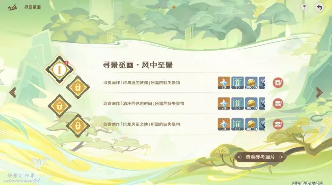 共3個玩法:「百步禮擲」=投壺、「靈感噴激」=打怪、「尋景覓畫」=拼圖。