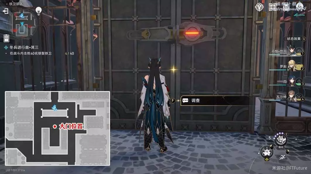 進入挑戰後,不用做擊敗40名鐵衛的任務目標,直接到圖示位置調查這裡的大門,敲門3次後即可打開大門。挑戰門後的傑帕德,獲得勝利即可完成此成就。