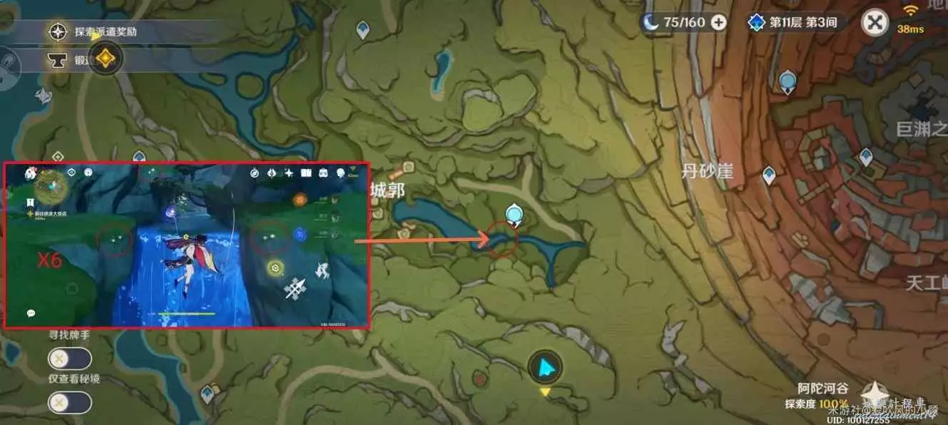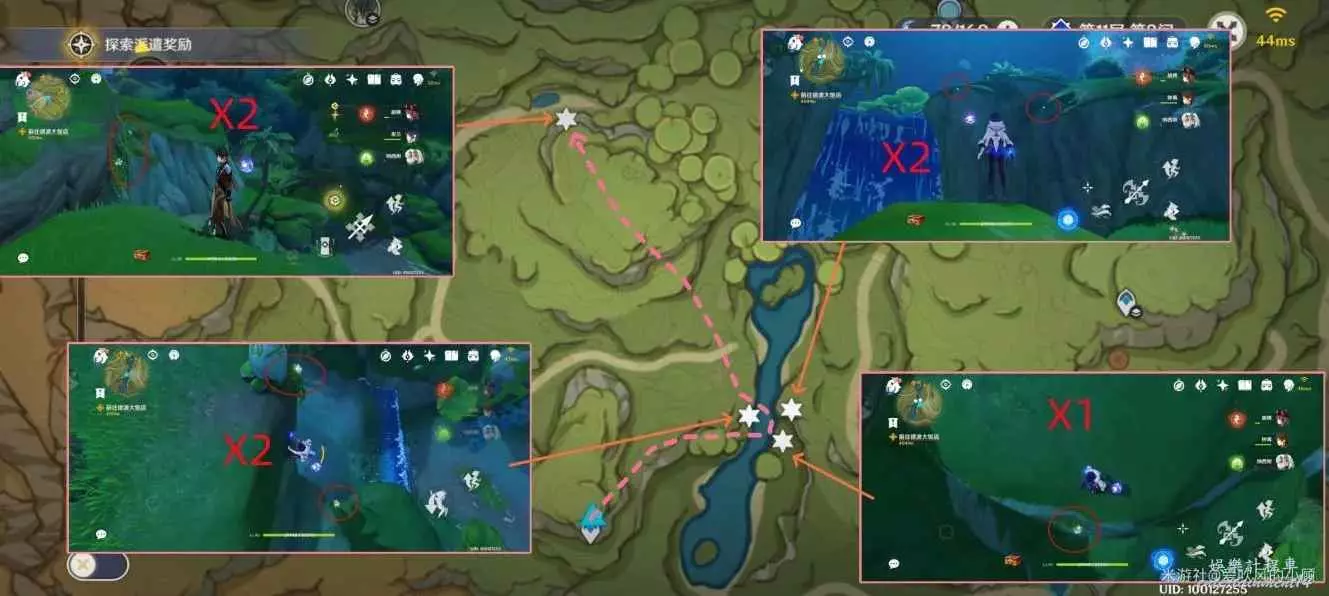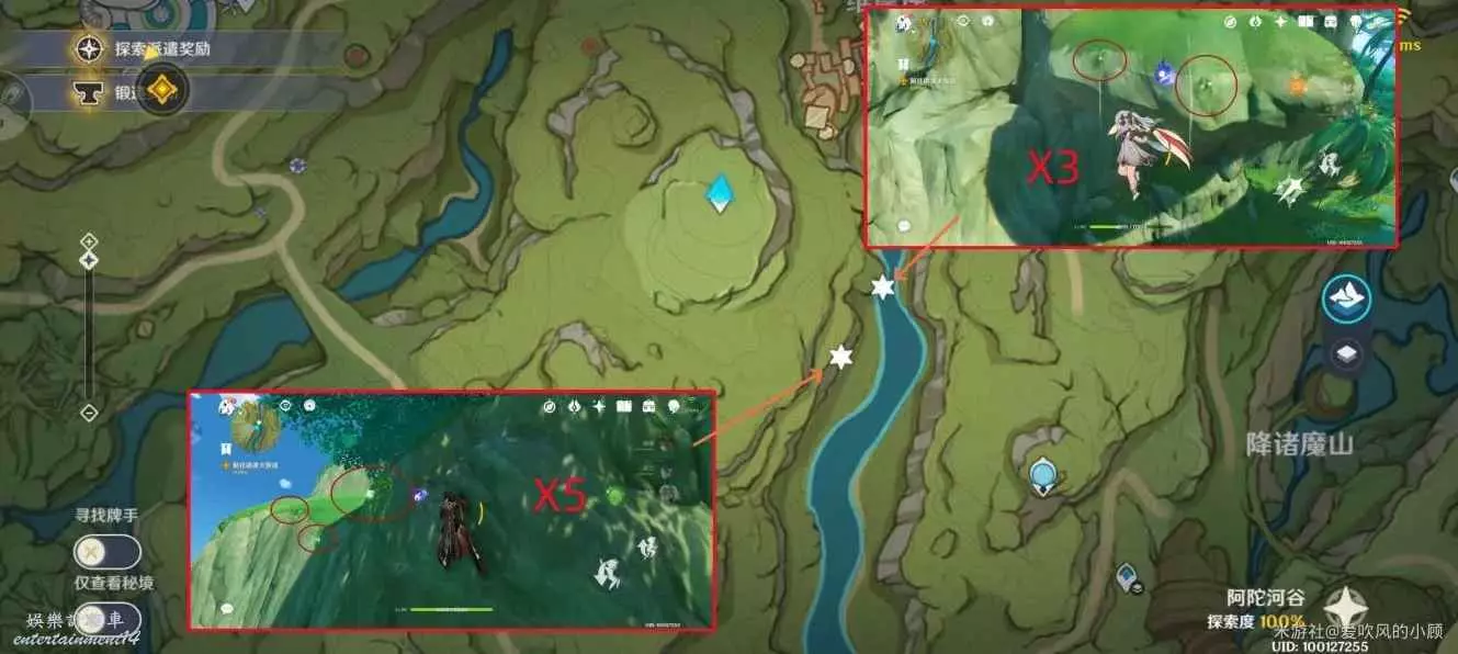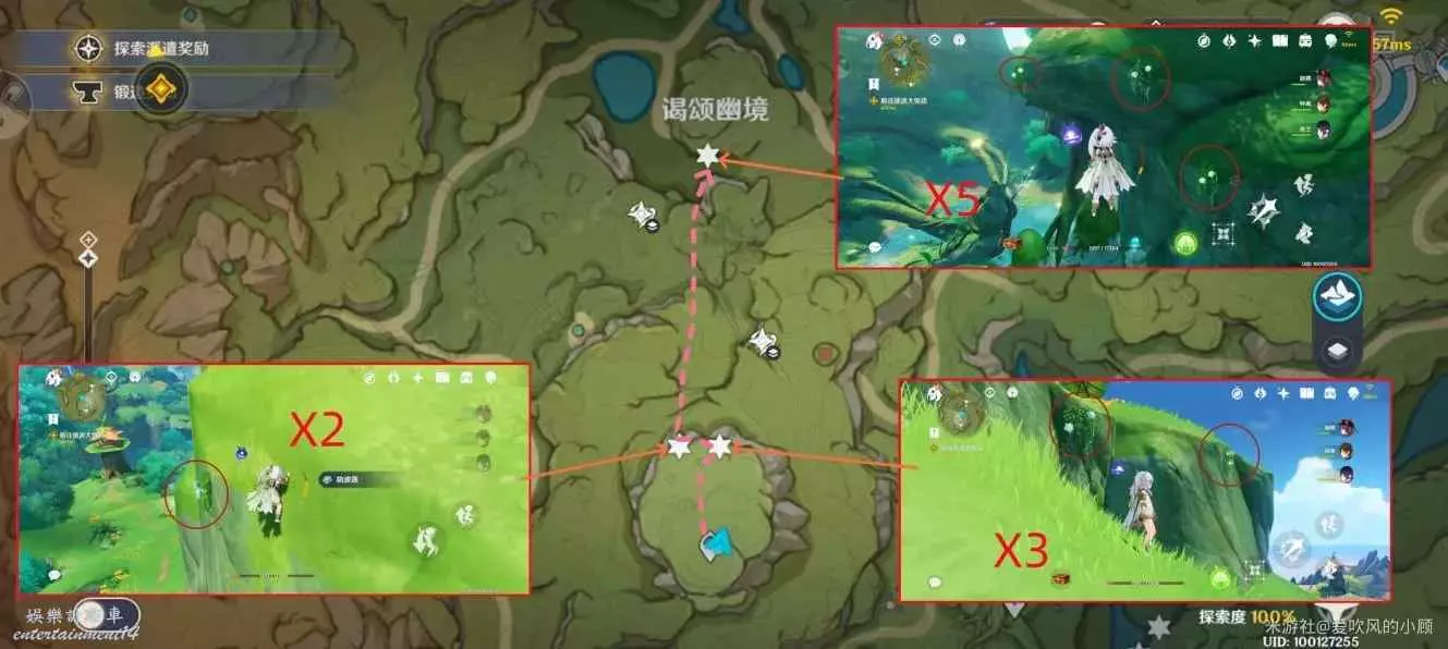 5.傳送至謁頌幽境正下方傳送點,按照路線採集,共10朵