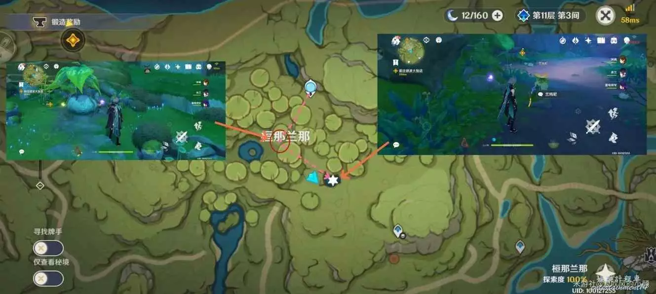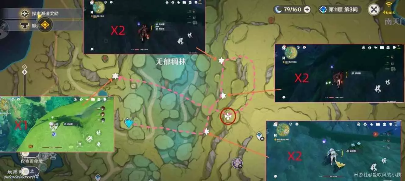 9.傳送至無郁稠林左下角傳送點,按照路線採集,共7朵