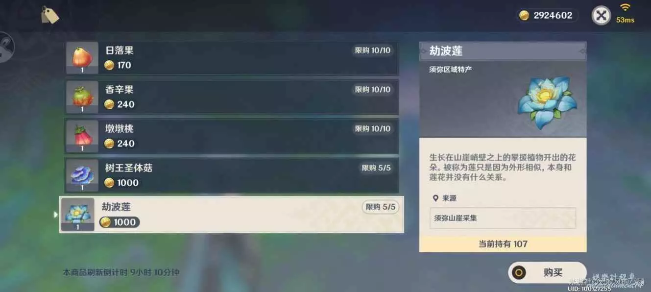 ▶劫波蓮採集數量:全圖可採集66朵,NPC獲取4朵,商店購買5朵。