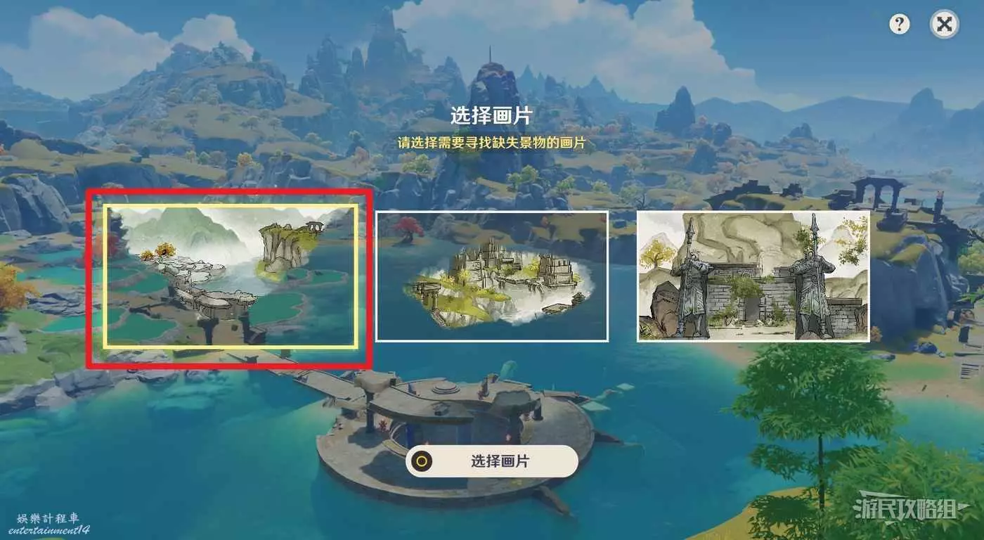 最後視角往螢幕右下方移動,對準湖邊的亭子和斷橋。