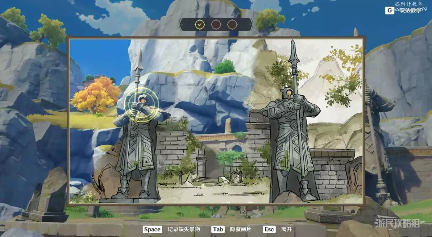 記錄缺失景物後,視角往左移動,對準螢幕左側雕像的上身和長矛。