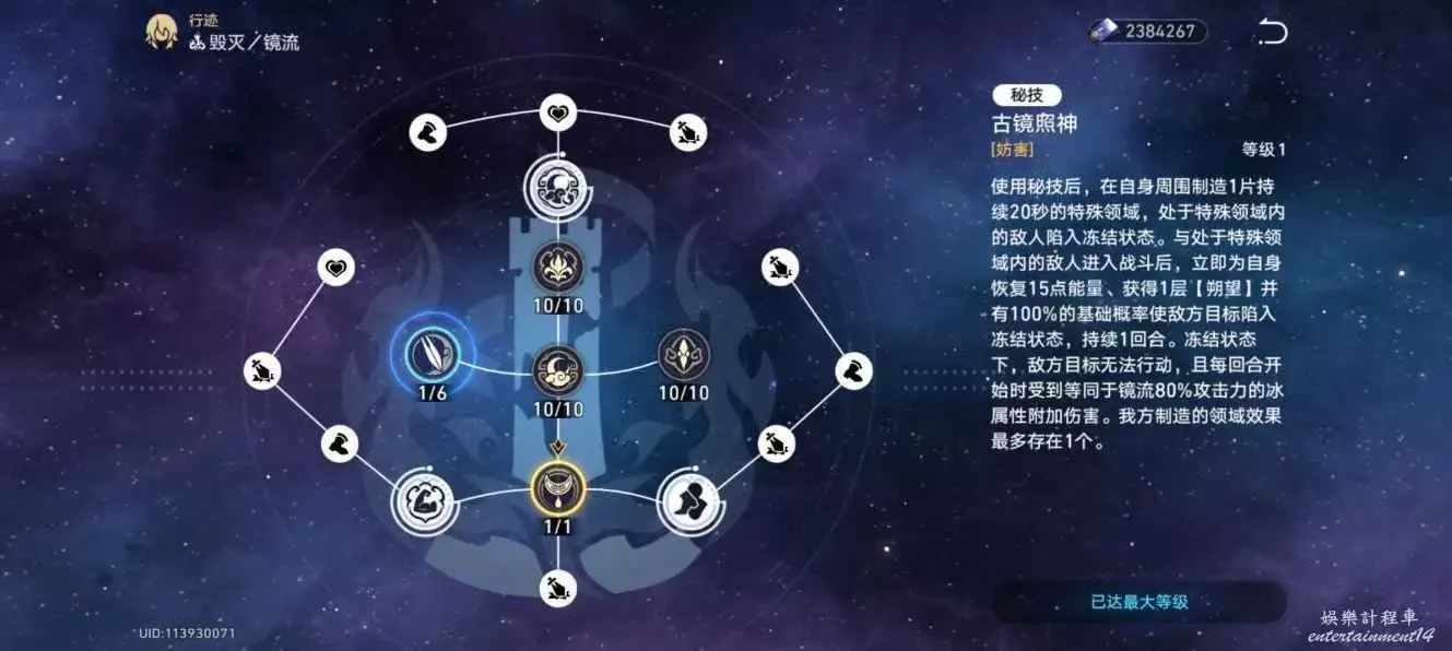(鏡流秘技屬於後台秘技,可以同其他角色的秘技一起開,進入遺器副本等關卡則不會觸發秘技效果)