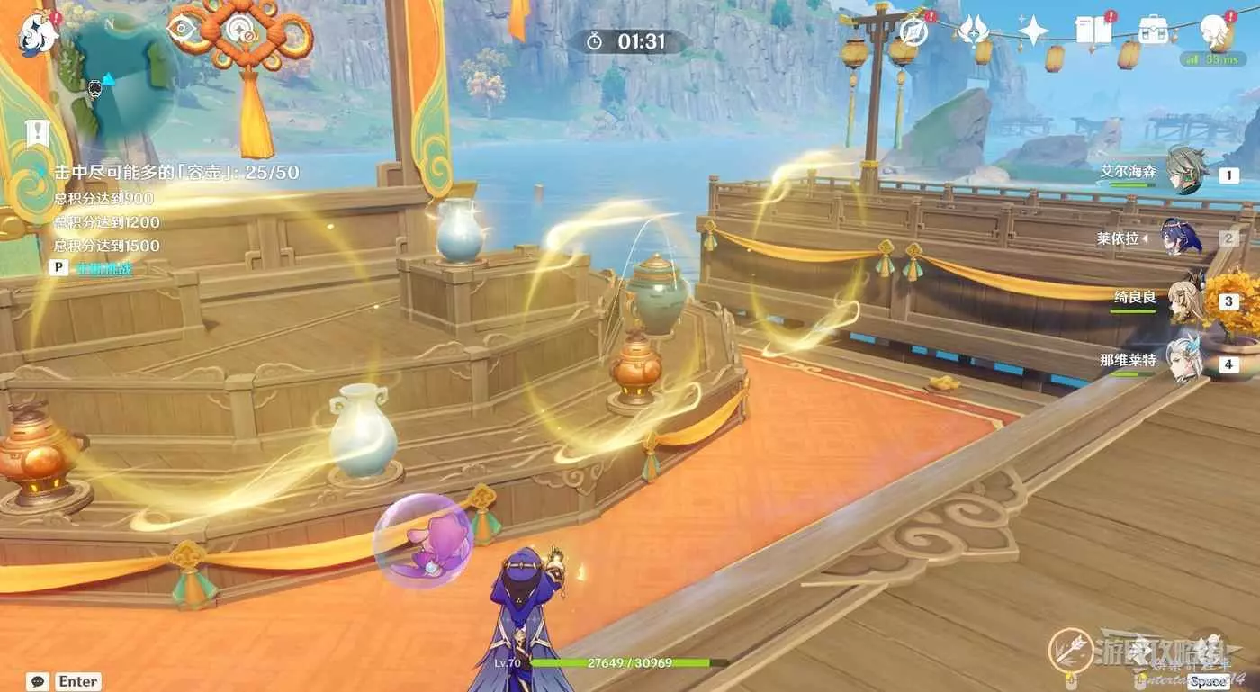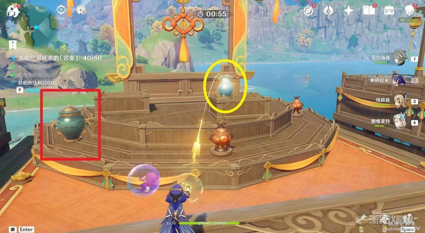 除此之外本關還會出現之前的吞壺,建議先擊中妙壺獲得連續投擲的能力再將其打碎。