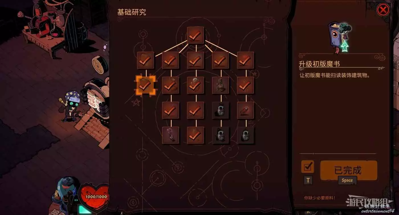 除此之外,在【研究魔法機】處可以升級魔書,只有在魔書升級之後才能掃描生物和裝飾建築物。