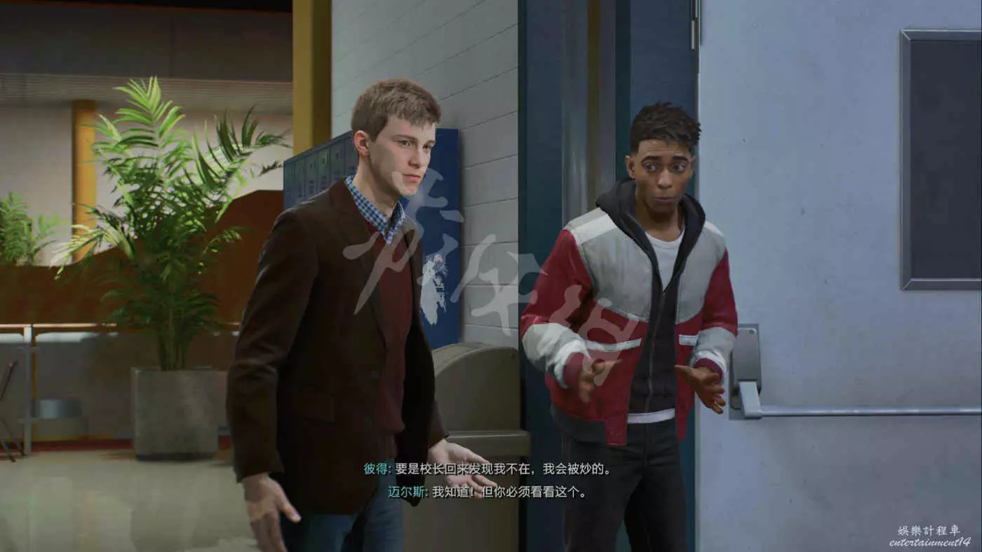 課上蜘蛛感應出現,派克和邁爾斯二人換上戰衣出發。