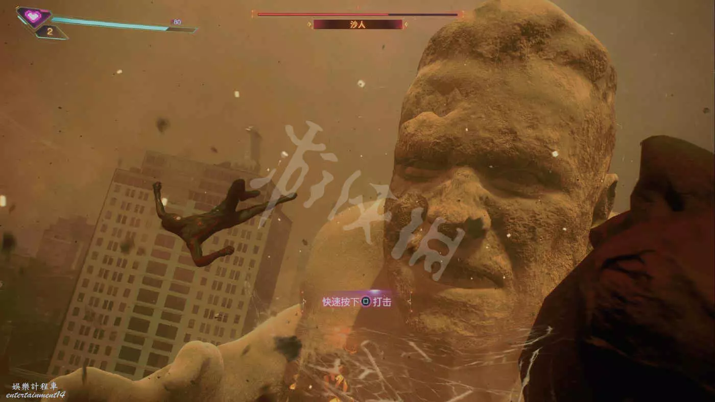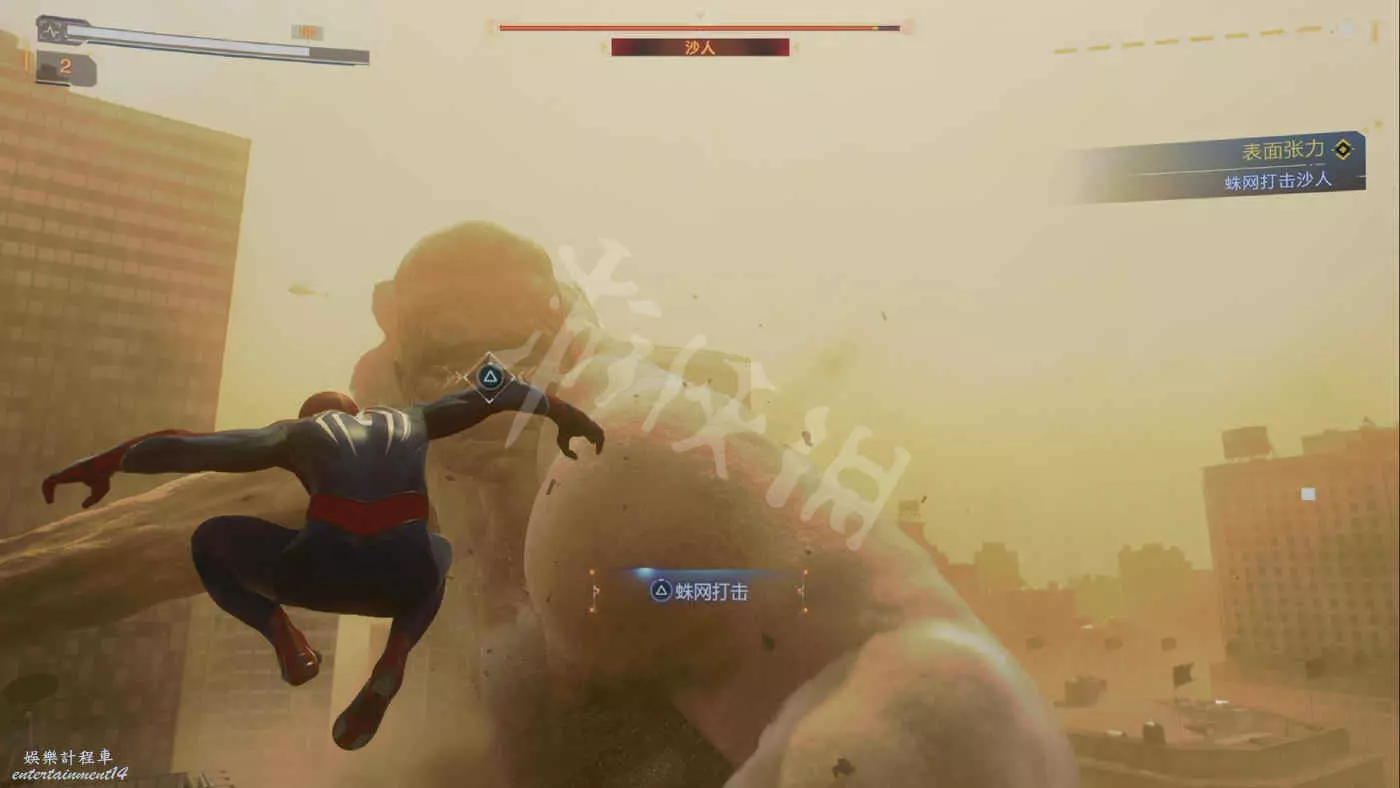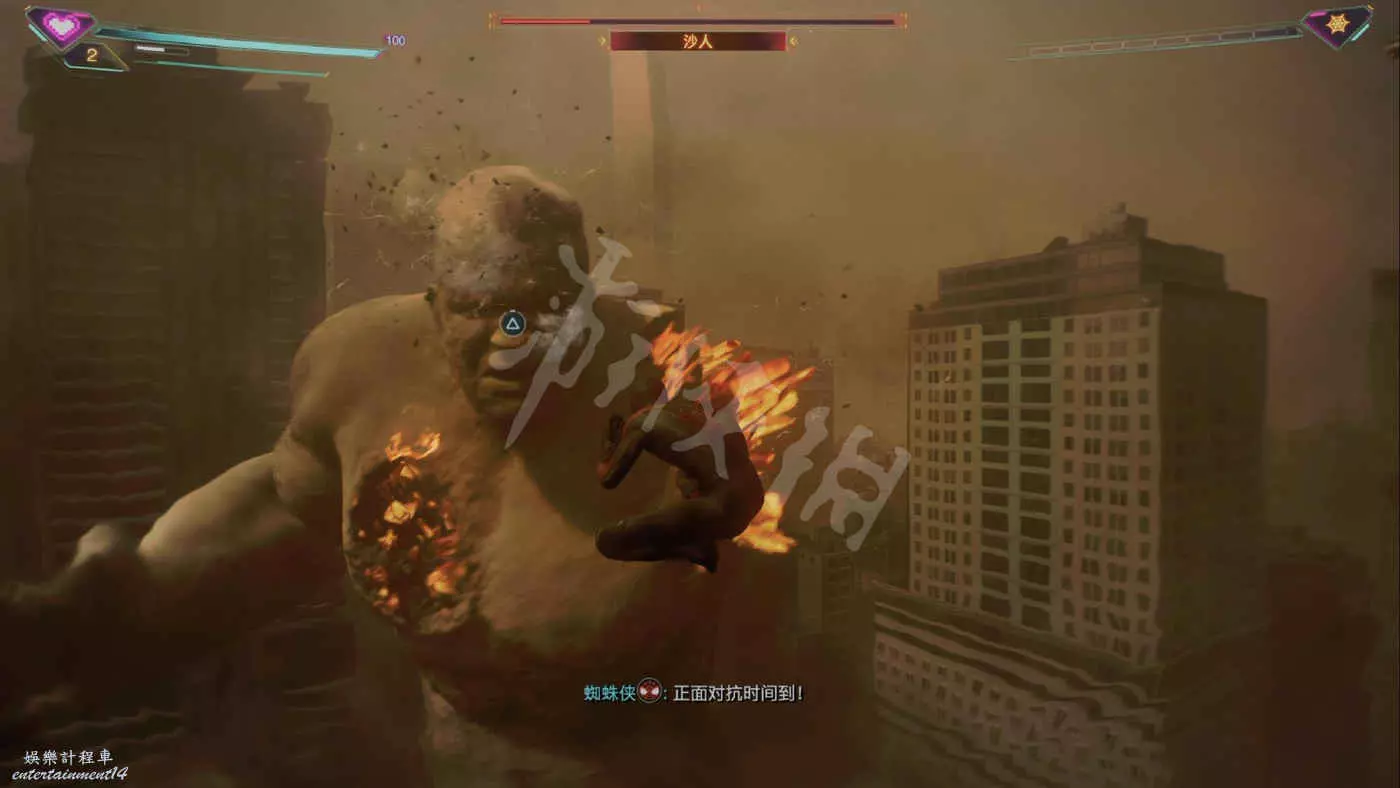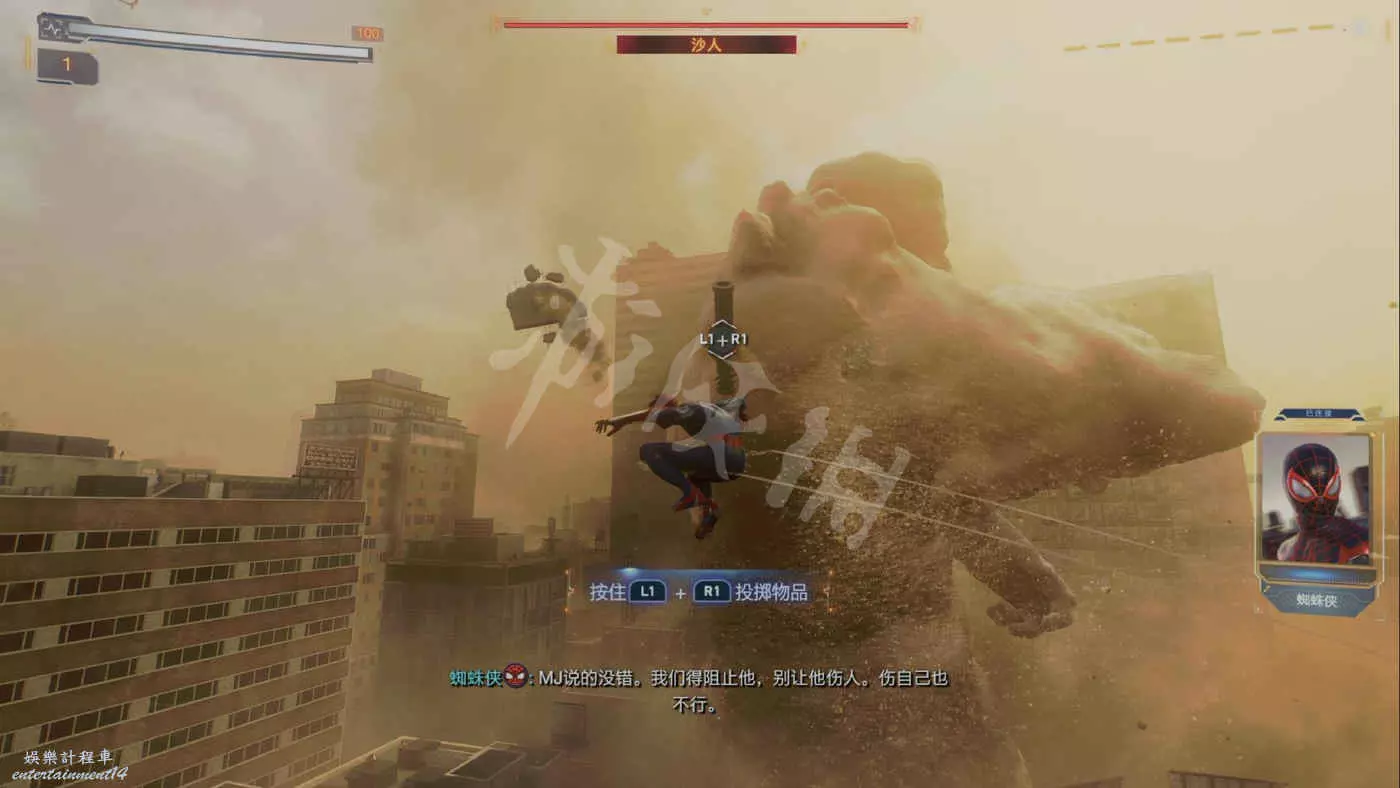 切換到邁爾斯,先用投擲物攻擊沙人,出現提示後使用毒液電。