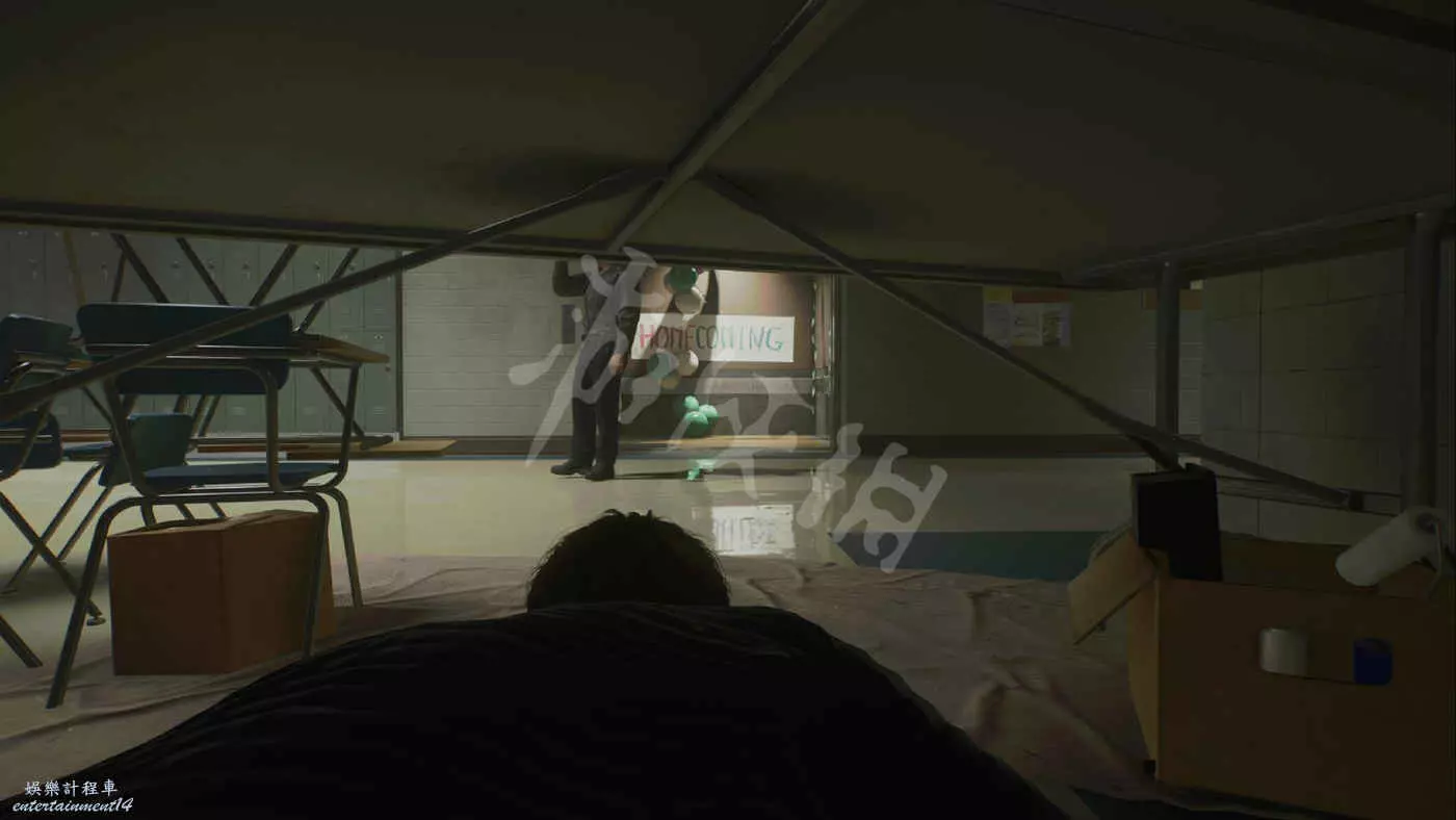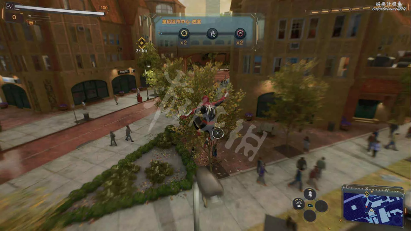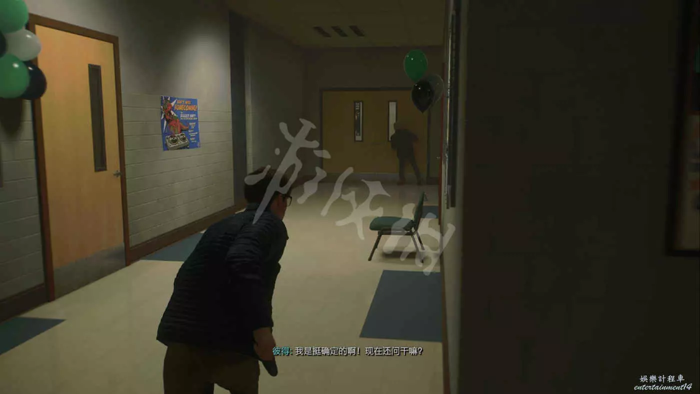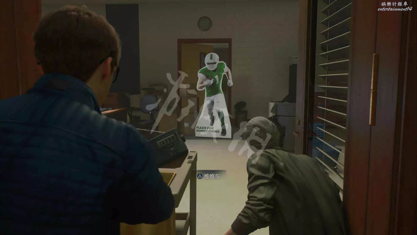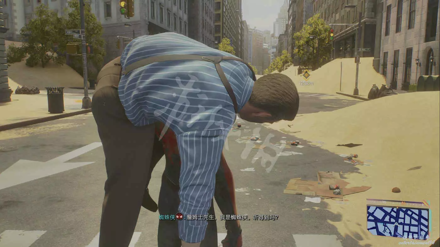 投籃結束回到過去,跟隨路標取回U盤,電梯口用蛛網發射器打破氣球引起保安注意。