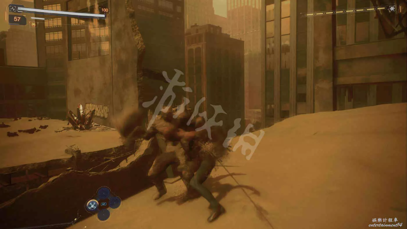 沿著大樓向上跑,期間閃避沙人攻擊。