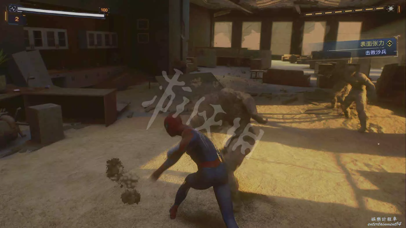 反覆使用蛛絲致盲快速打擊沙人等待派克投擲水桶。