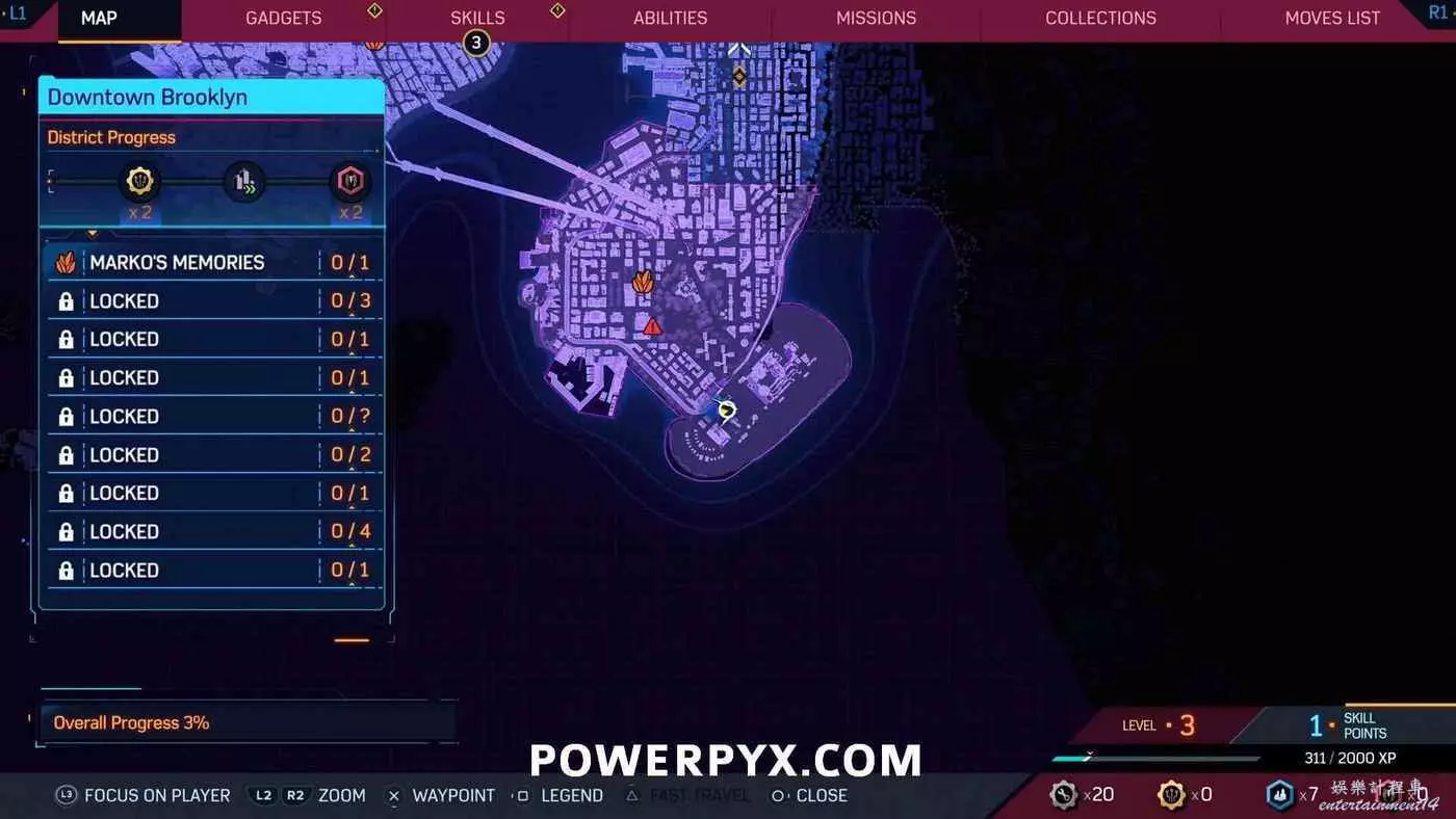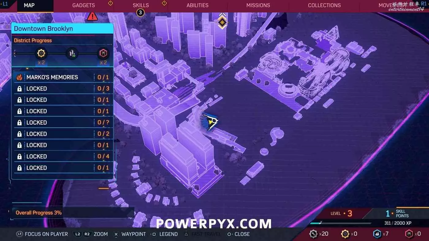 除了蜘蛛機器人沒有標記之外,所有收集品都會在清除地圖迷霧時標記在地圖上,一旦達到區域2級,地圖迷霧就會全部清除。
